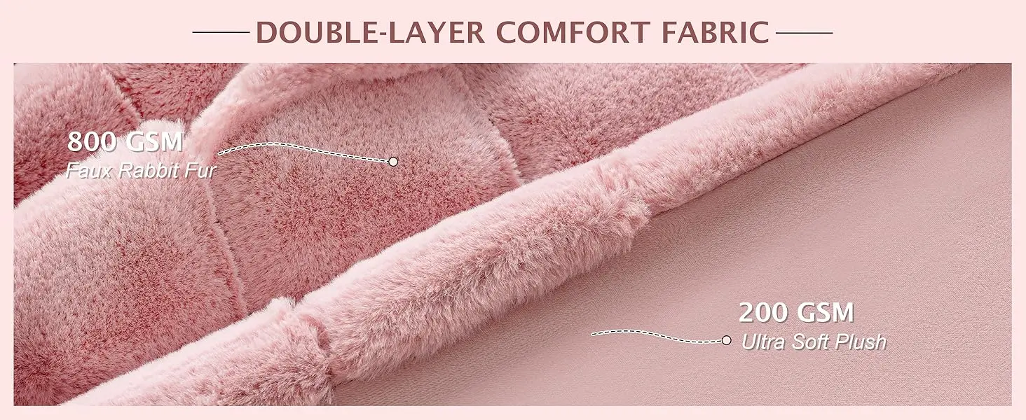 Luxurious Plush & Ultra-Soft Faux Fur: This 1000GSM fluffy faux fur throw blanket featuresluxurious faux rabbit fur and a silky mink inner layer, creating a beautifully thick texture that strikes the perfect balance between warmth and lightness. The double-layered design offers a luxurious texture and exceptional comfort, ensuring a restful sleep even in winter.