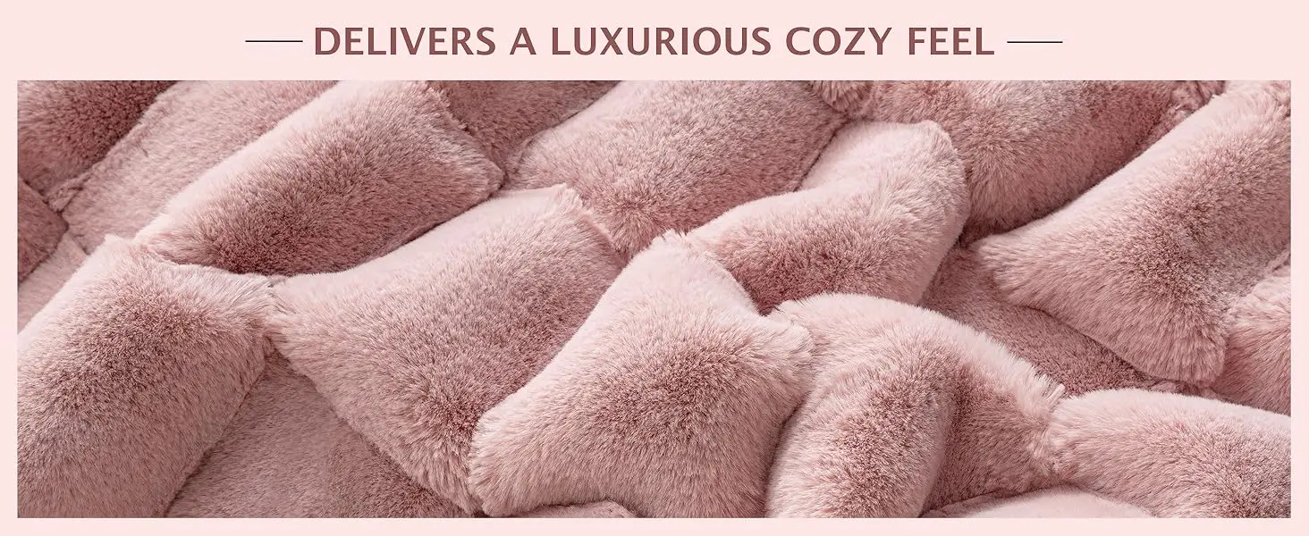 Unique 3D Check Design: This plush faux rabbit fur blanket showcases an intricate 3D check pattern with reinforced seams to prevent unraveling, the exquisite design perfectly blends elegance with modern minimalist style, adding a touch of luxury to your home decor.