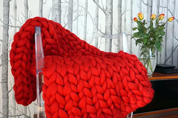 Hand Knit Blanket --- This thick woven blanket can not only be easily used as a quilt on sofa and bed, but also be placed in every corner of the home as a beautiful home ornament. It can create a festive atmosphere in special festivals. Giving it to the person you love most can not only warm her(he) body, but also warm her(he) heart.