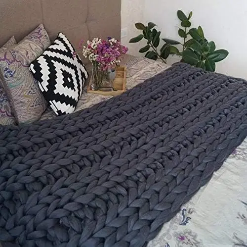 CHUNKY KNIT BLANKET THROW --- Merino wool symbolizes nobility and blended craftsmanship makes it more luxury. The blanket woven with thick yarn is very soft, gentle to the touch, and will not itch or irritate your skin. Chunky knit blanket with wool blend is perfect for everyone and it is the first chioce as a perfect gift for your friends and family.