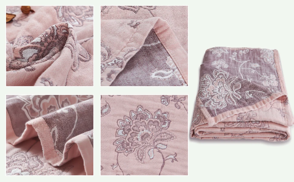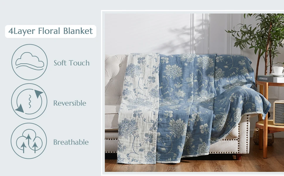 Versatile Use: Perfect for indoor use on couch or bed, and a stylish companion for outdoor picnic and travel. Our 4 layer blanket can be uesd as quilted throw, coverlet or bedding sheet by your creativity