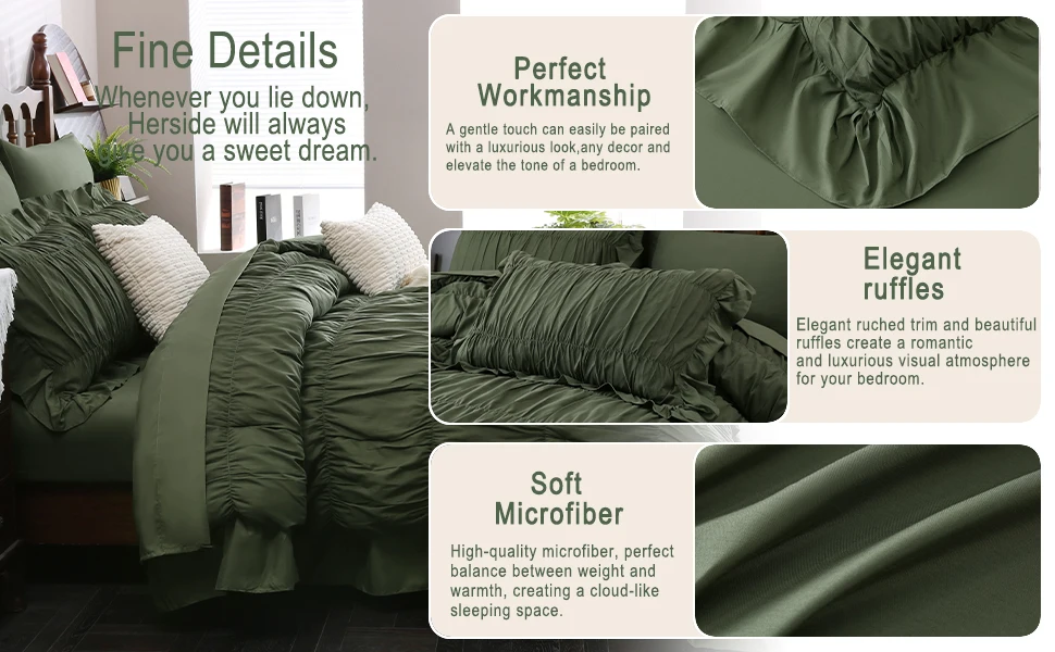 Soft and Breathable Fabric: The front side has the romantic ruched design and the underside is smooth and breathable, providing you with a comfortable sleeping experience all seasons