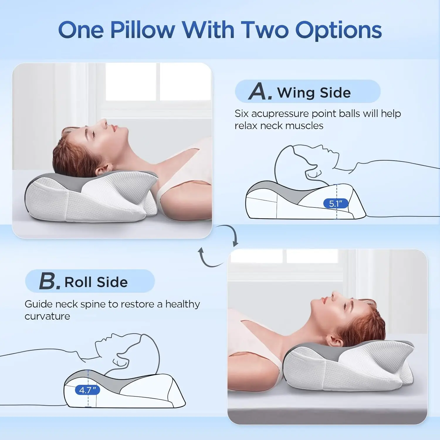 [Dual-Sided Design For Customized Neck Support] Offering Dual-Sided Support, The Wing Side Features Six Acupressure Point Balls Designed To Relieve Muscle Tension, While The Roll Side Delivers Gentle Cervical Traction.