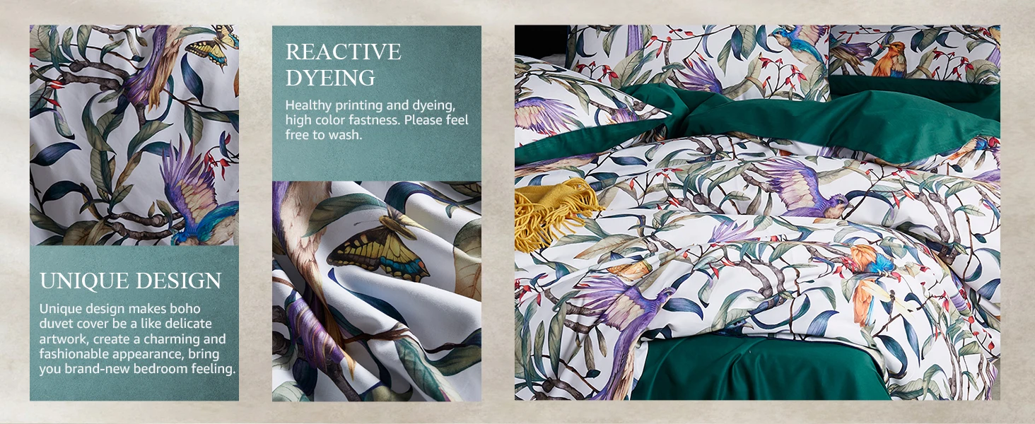High Quality Fabrics and Technology:queen duvet cover set made from high gram microfiber with active digital printing and dyeing technology, exceptionally soft against your skin, breathable and comfortable, yet are Fade, Stain and Wrinkle Resistant.