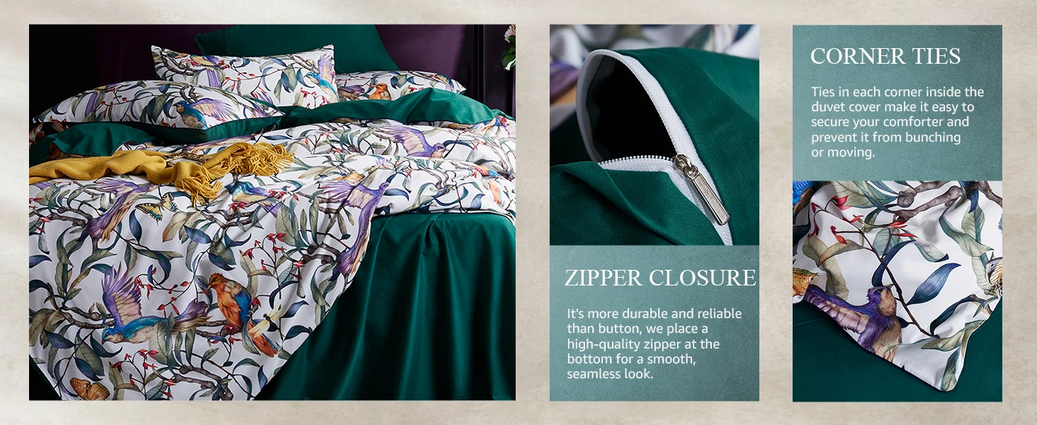 Zipper Closure & Corner Ties: The invisible side zipper bedding easily allows you to insert and remove your fluffy duvet /comforter/quilt/bedding when needed. The four corner ties ensure that your comforter remains immovable in the cover.