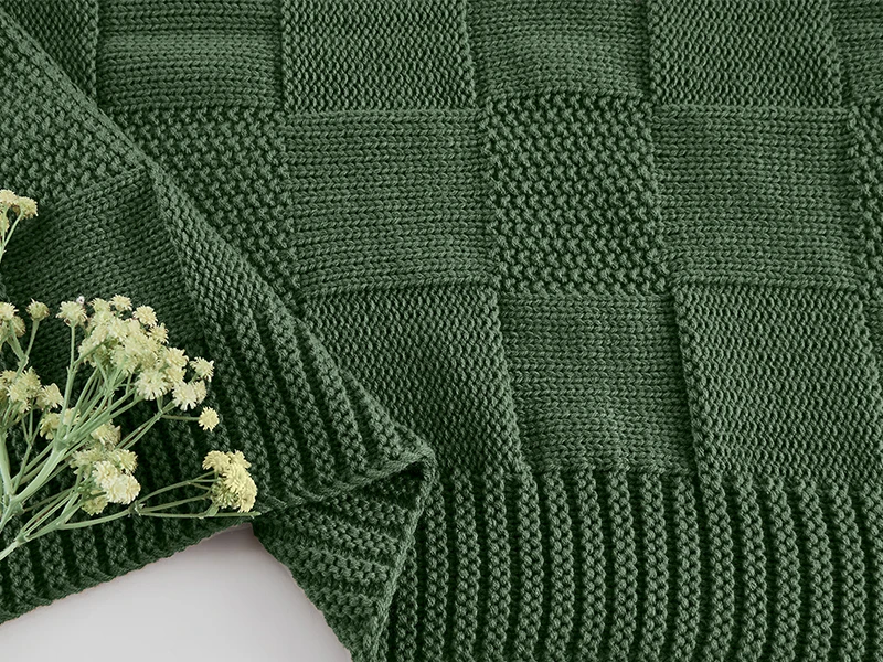 Checkers and quilt-like squares are currently all the rage, and this beautiful knit blanket will keep you right on trend. Forget about seaming several squares together as this blanket is knit in one piece.
