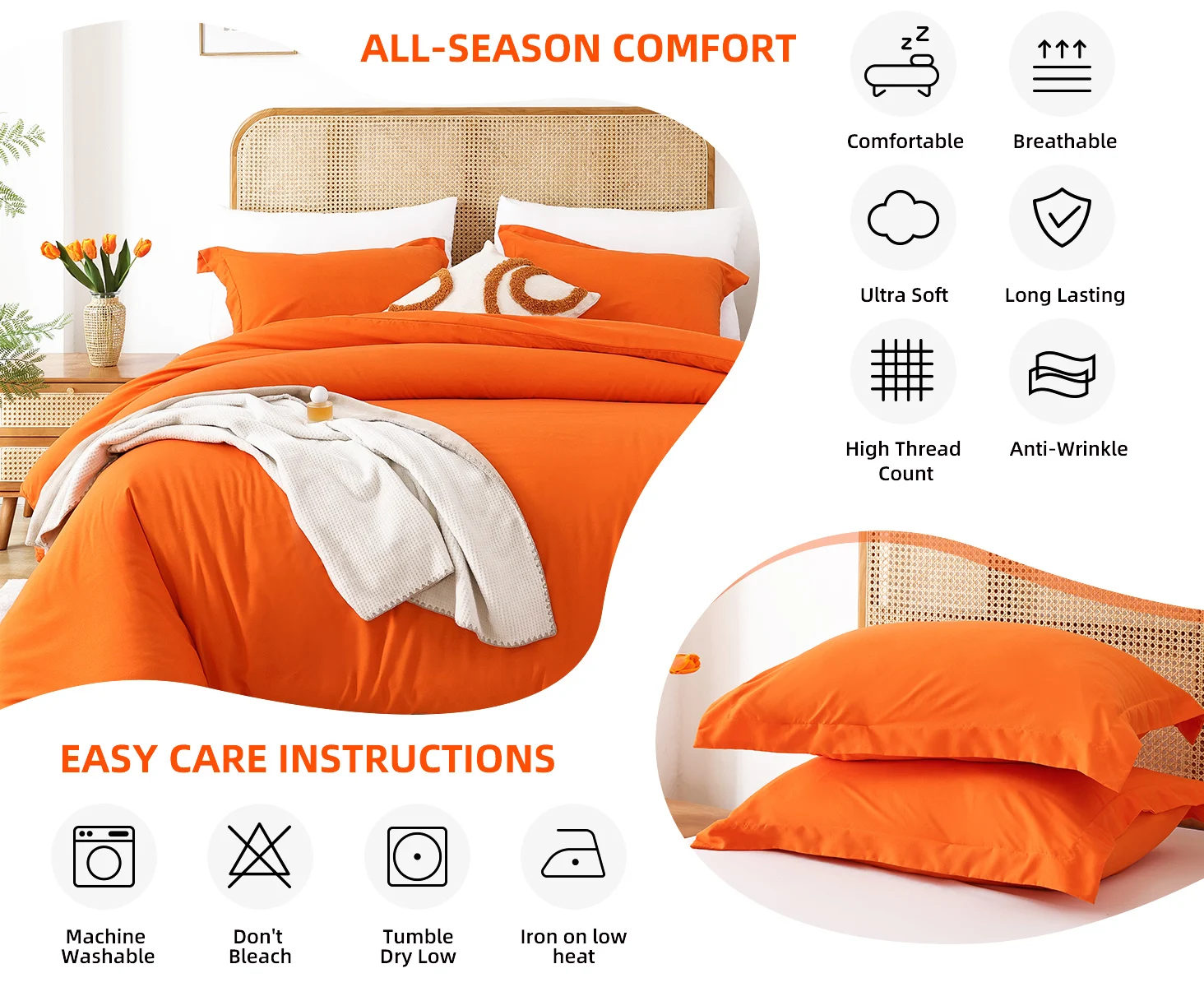 The fabric of the duvet cover is skin-friendly, and retains heat while still remaining breathable. Washed cotton is the raw material handled by process. The color does not fade.
