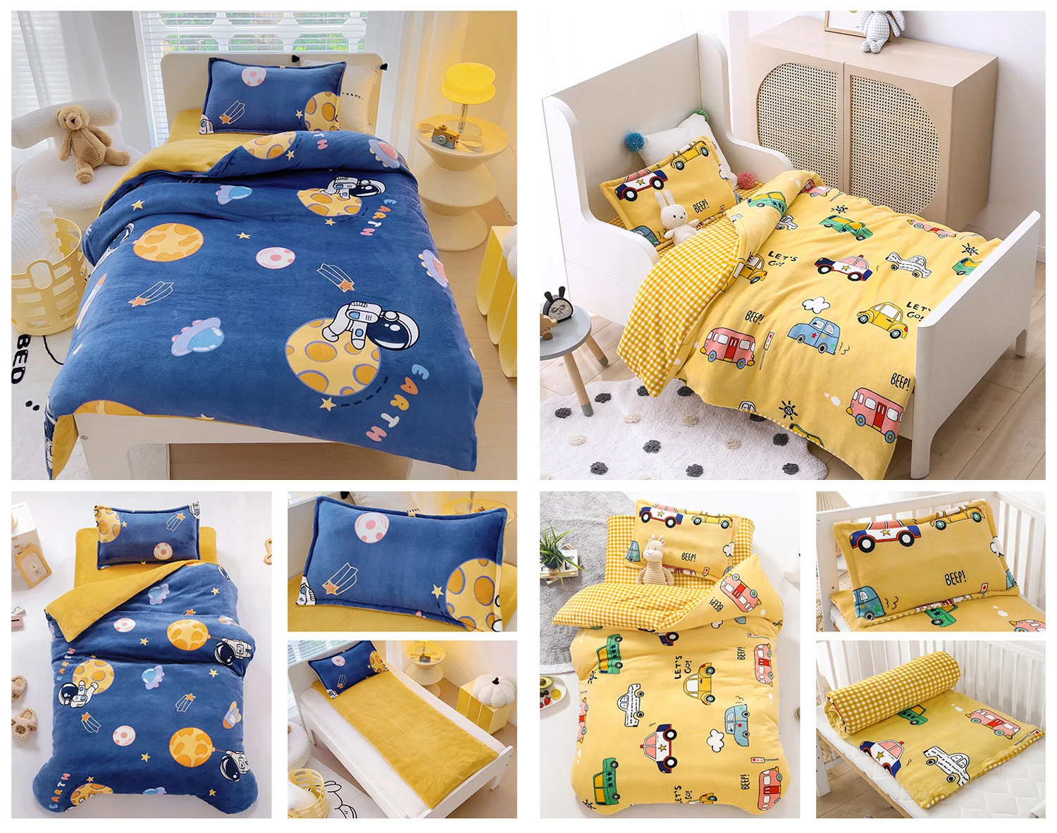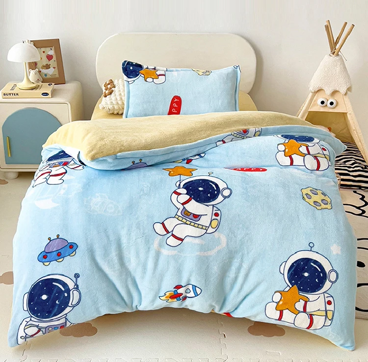 Warm Quilt Plush Comforter Fleece Velvet Cartoon Quilt Core Bedding Set for Children Fluffy Furry Sheet Duvet Cover Sets