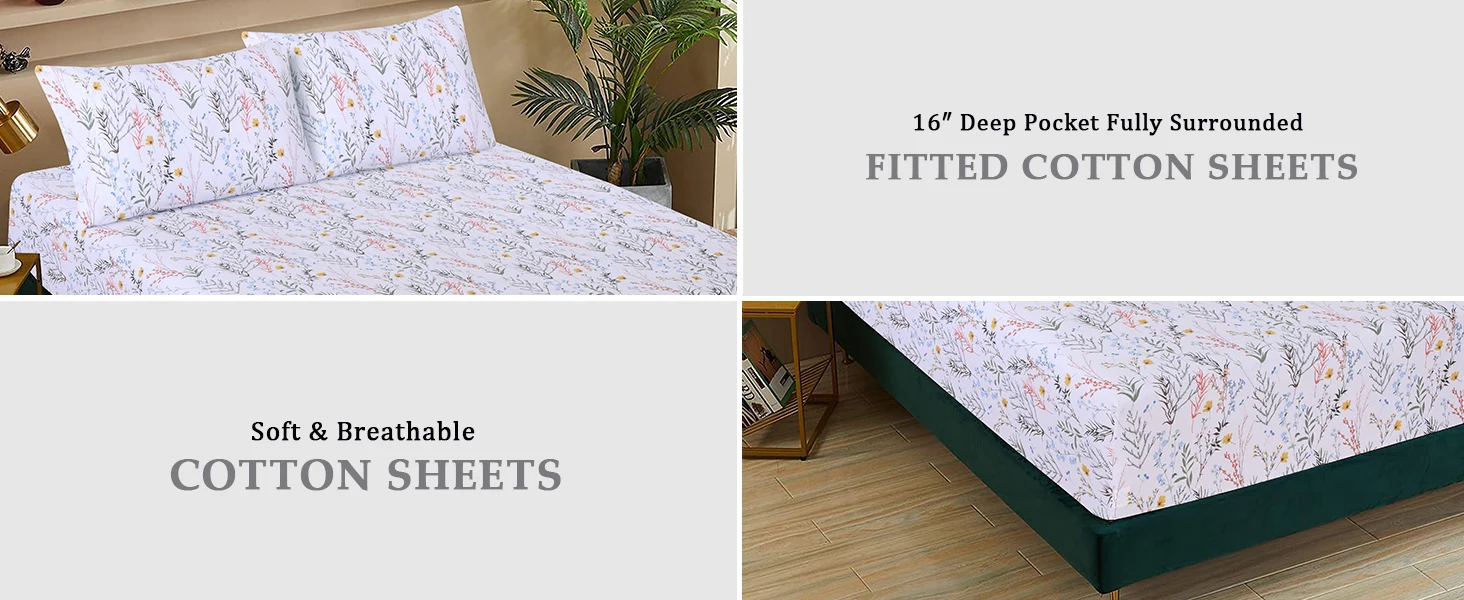 Softness & Breathability : We have used Premium Cotton to Ensure an Extra Soft, Better Air Circulation, Breathable, and Natural Cooling Cotton Sheet Set For Your Better Comfort and Restful Night Sleep and Refreshing Morning.