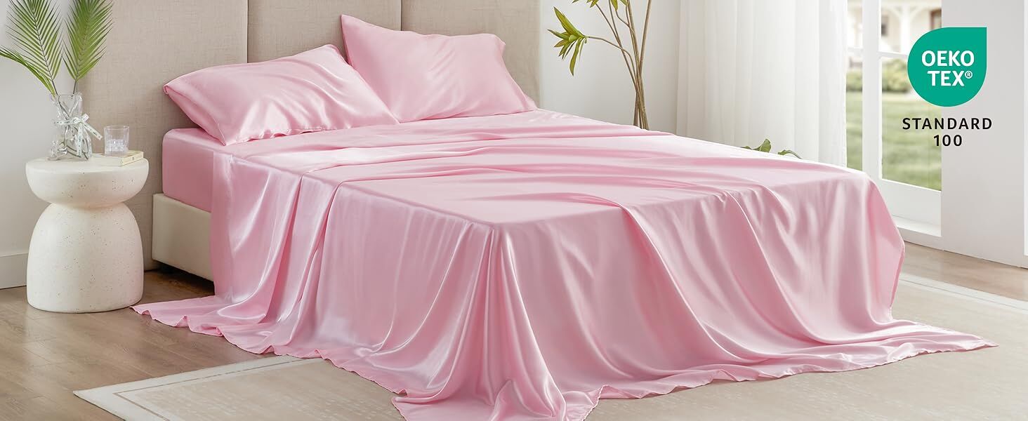 Easy to Care- Our satin sheets set is machine washable in cold water and tumble dry low, do not bleach! If your skin is sensitive, we suggest you to wash it before using.