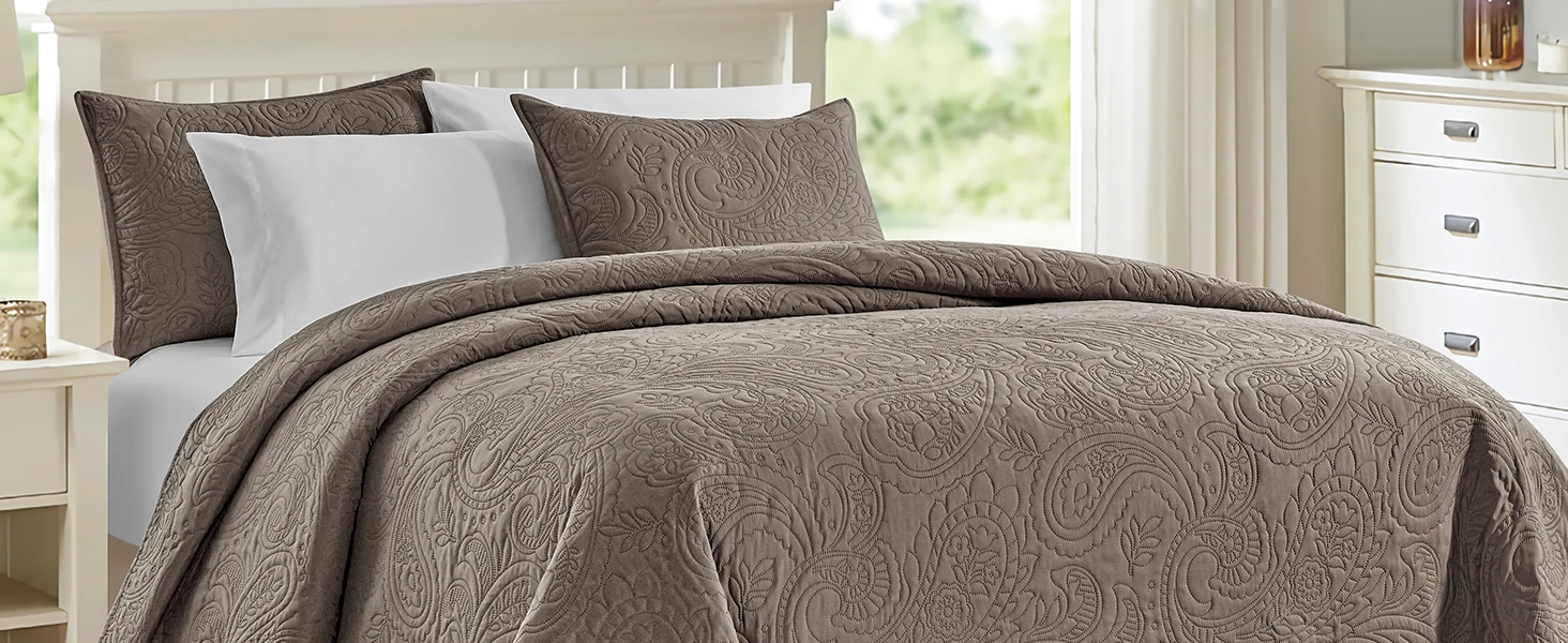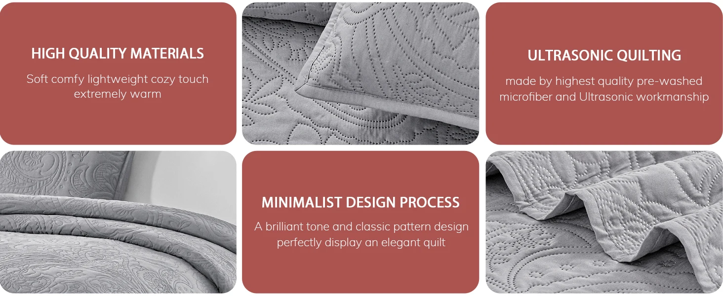 Outstanding features: Year-round chic design, Quilt Sets with the Coin Pattern's lightweight embossed coverlet avoids thread breakage and disconnection, keeping the quilt delicate. Non-stitched ultrasonic pressing technology will hold up through washing and won't unravel for long - term use. Lightweight, durable bedspread sets are perfect for families with pets or kids.