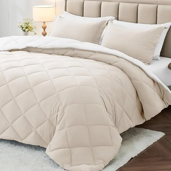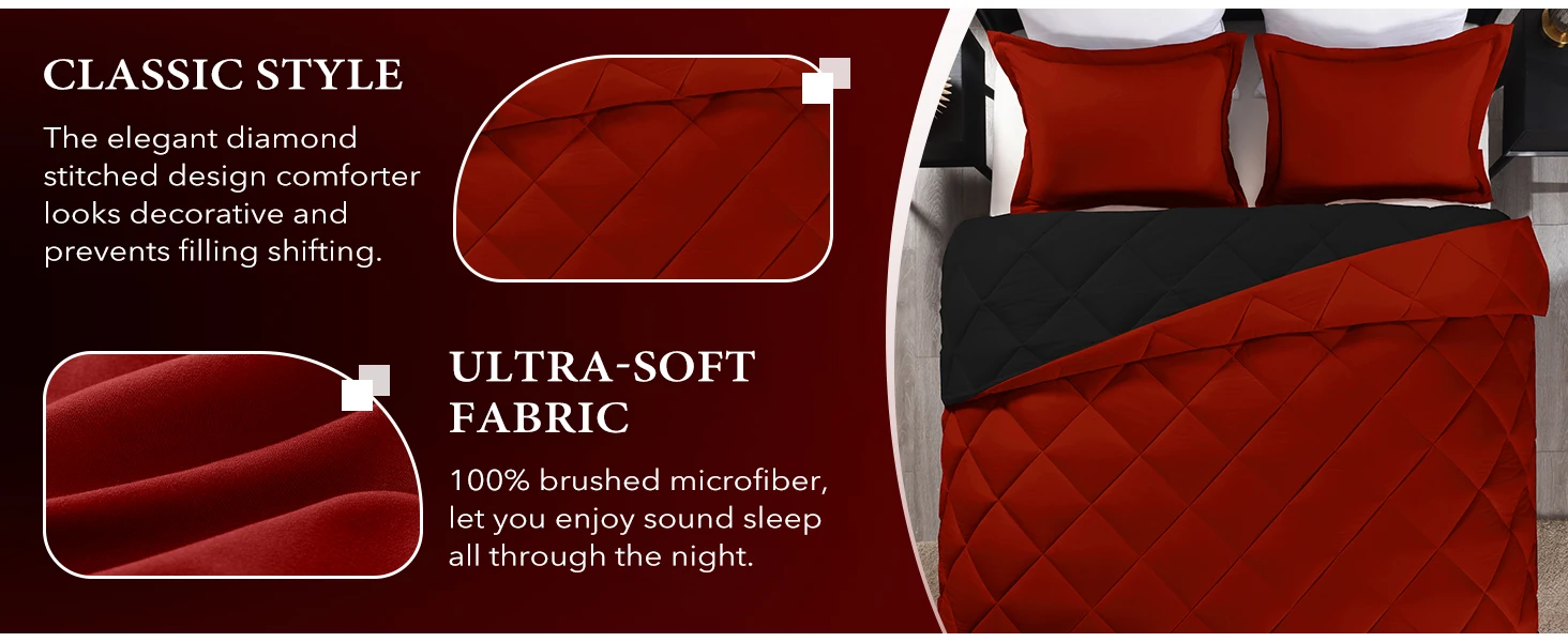 Unique Box Stitching Design: Add comfort, style, and sophistication to your bedroom with our reversible dual-tone and square stitching design. The box construction of this bedding set prevents fiber fill from shifting, ensuring your comforter remains cozy