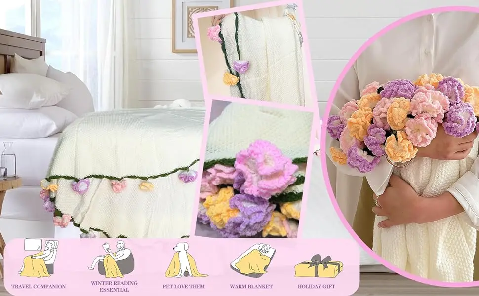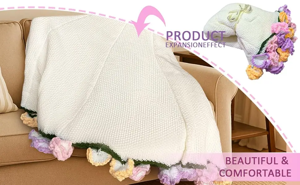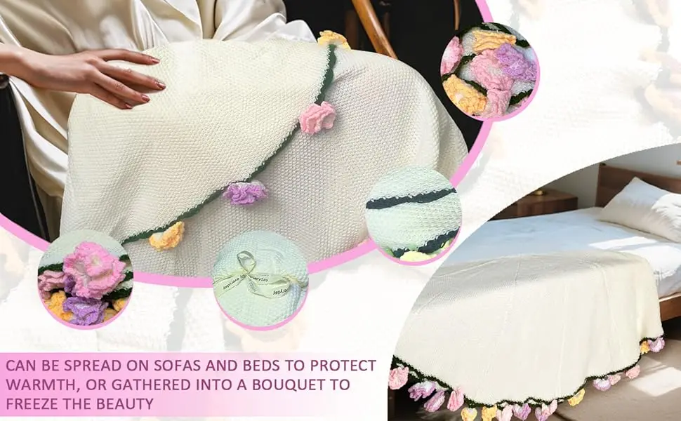 【Cloud-Soft All-Season Comfort】You can use a flower blanket on winter nights and turn it into a breathable, thin blanket in summer, making it suitable for staying comfortable all year round. Whether you are relaxing at home, camping, traveling or enjoying a beach day, knitted blankets are the ideal companion for warmth and comfort.