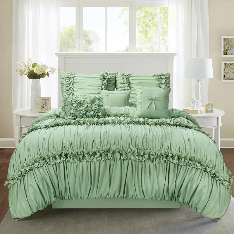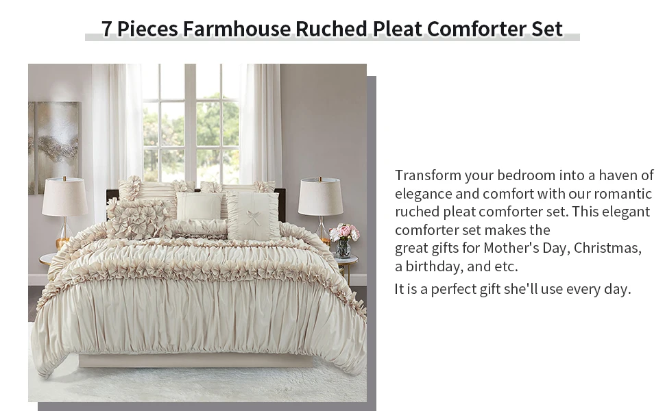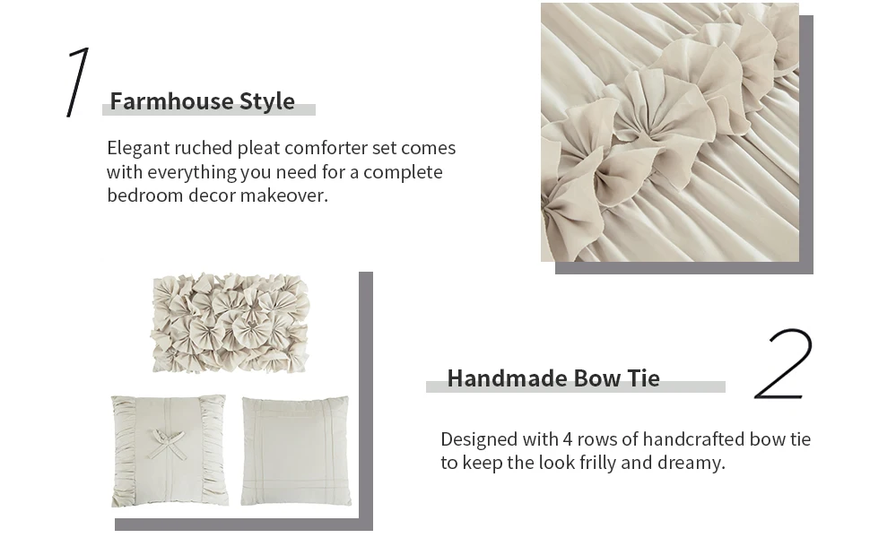 Exquisite Craftsmanship: This Elegant Comforter Set Uses Ruched Pleats And Bow Tie Craft. It Is Worth Mentioning That These Crafts Are Handmade And Stitched, Thus This Bed Set Is More Delicate And Lively Than Other Ordinary Bedding.