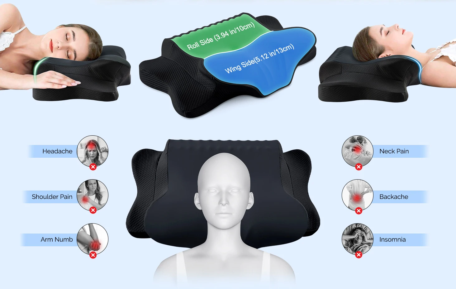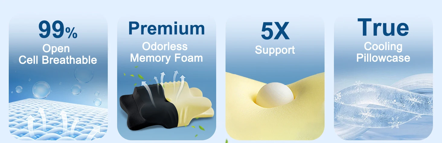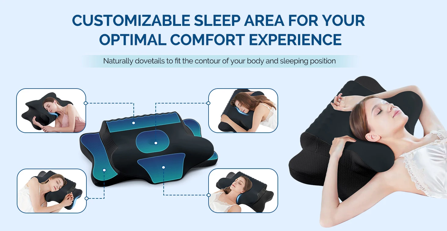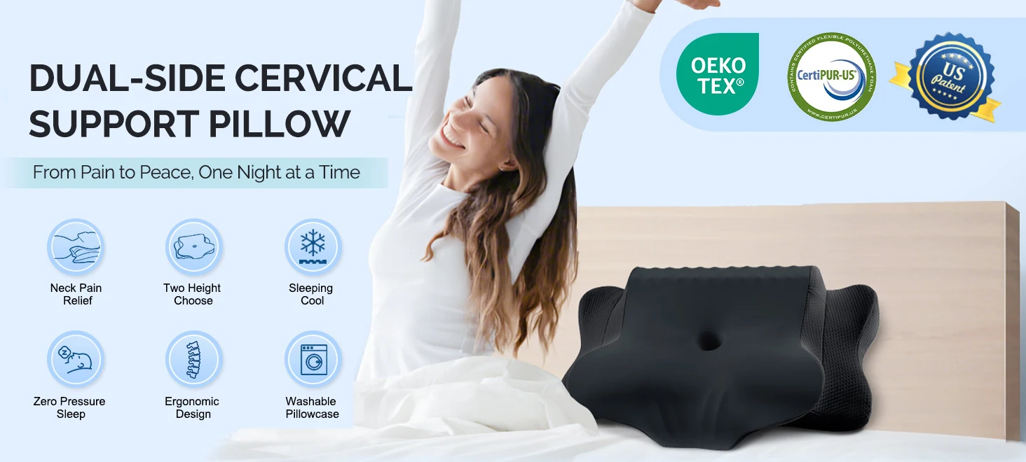 Cervical Pillow for Neck Pain Relief Ergonomic Dual Sided Orthopedic Neck Pillow with Ice Silk Pillowcase Contour Pillow