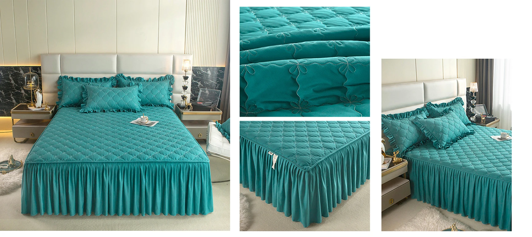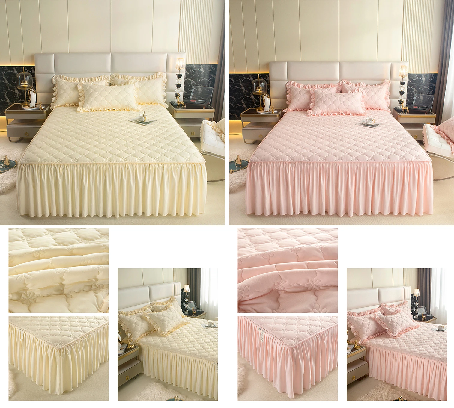 Product Name:Skirted Bed Cover Sheet Set Color:Customized Color Design:Accept Customized Designs Size:Customized Size Certification:OEKO-TEX STANDARD 100