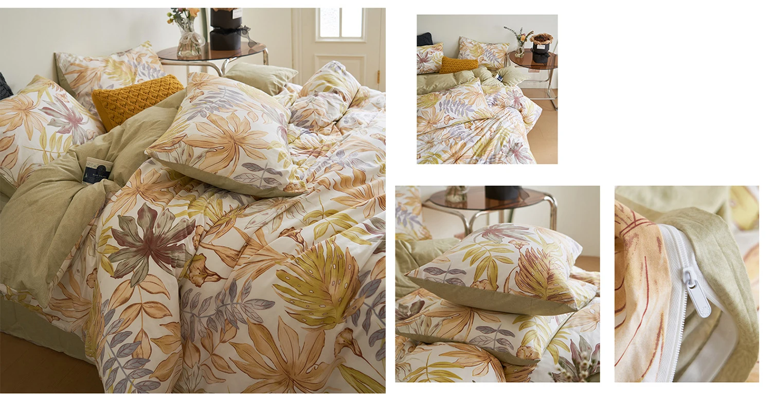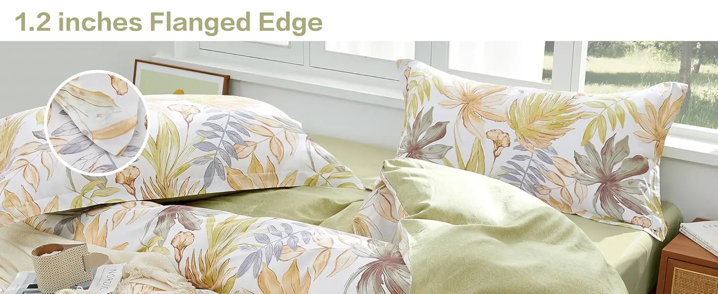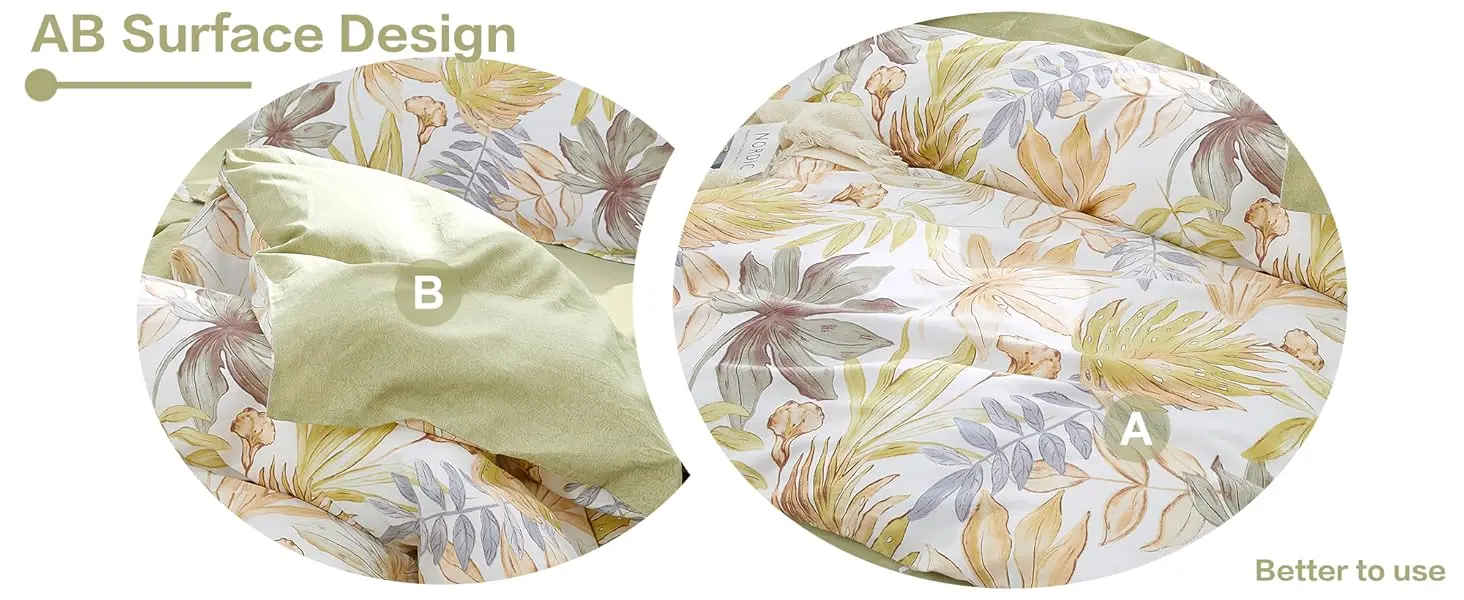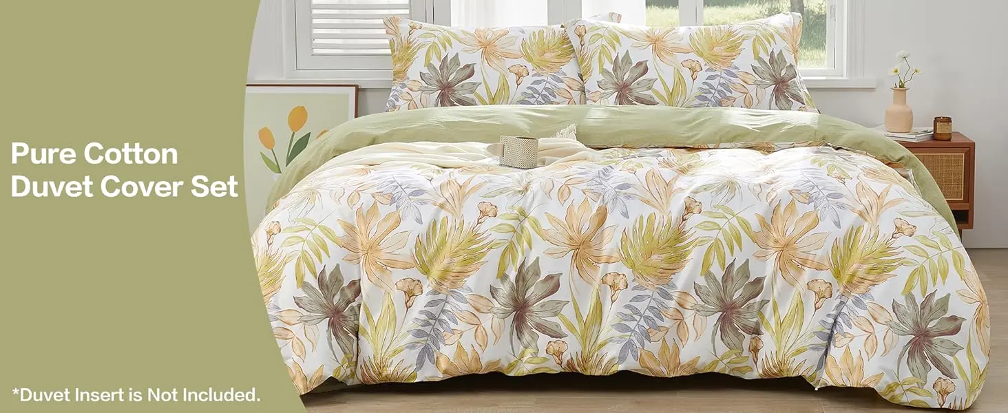 【Elegant Floral Design】: This cotton duvet cover set features a lively leaf pattern that blends modern style with natural tranquility.