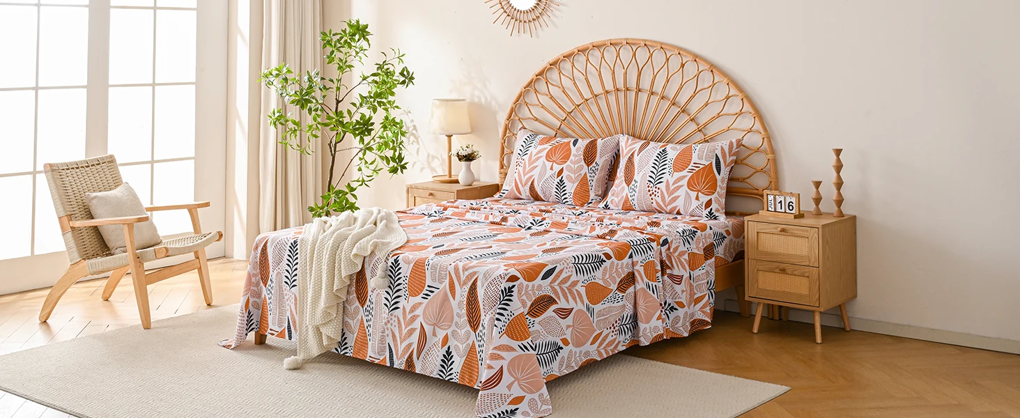 Separately. Elegant Design- Leaves Printed Sheets Feature Gorgeous Botanical Designs For A Bohemian Look Perfect For Any Bedroom.