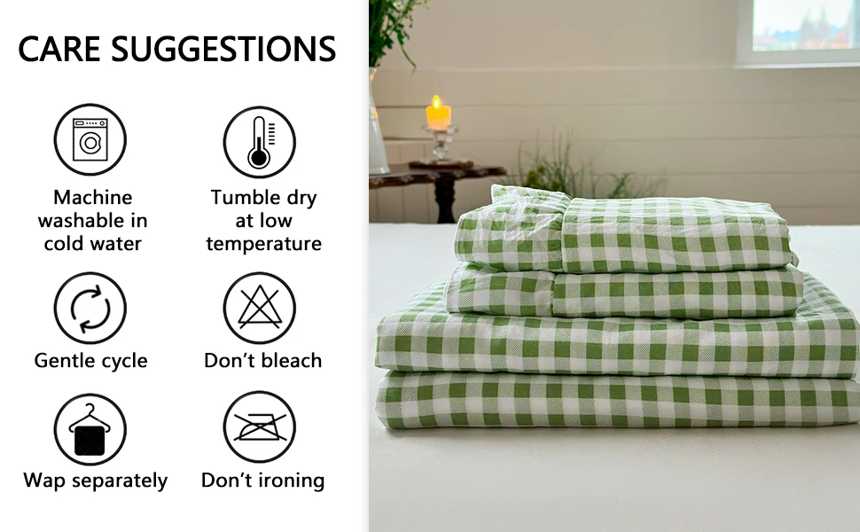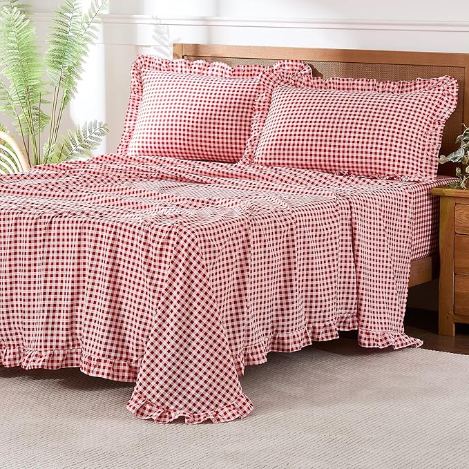 Charming Ruffle Design: This ruffle sheet set adds an elegant farmhouse touch to your bedroom. The delicate ruffled edges and classic gingham pattern blend vintage charm with modern comfort, perfect for creating a cozy aesthetic.