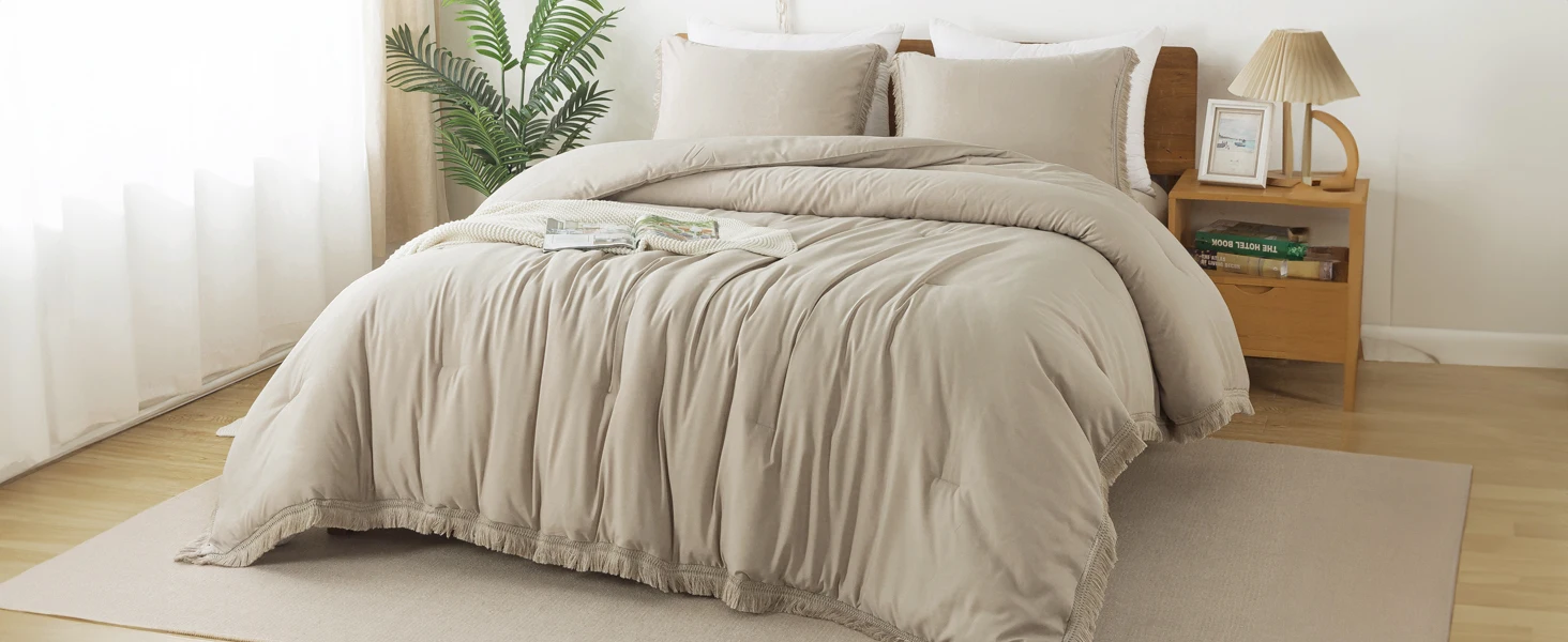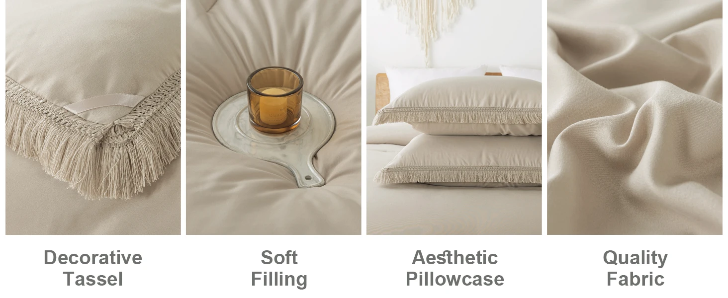 Ultra Soft Fabric: The tassel comforter set is made of premium polyester, which is super soft, breathable, warm, and comfortable. This lightweight comforter set achieves a perfect balance to be warm in winter and cool in summer and used for all-season.