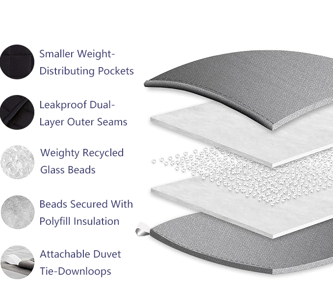 This sewing process makes the blanket distribute the weight evenly and allows weighted blanket to conform to your body.