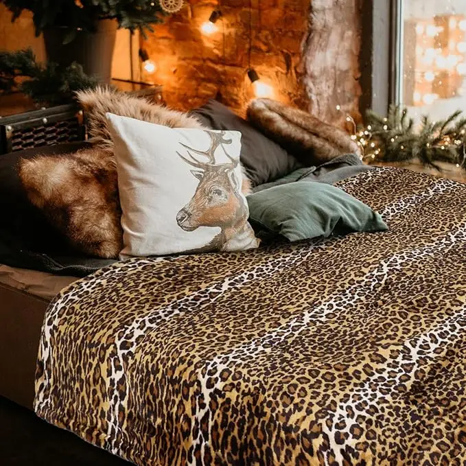 Leopard Printed Throw Blanket Custom Size Classic Leopard Pattern Throw for All Season Decor Animal Print Flannel Blanket