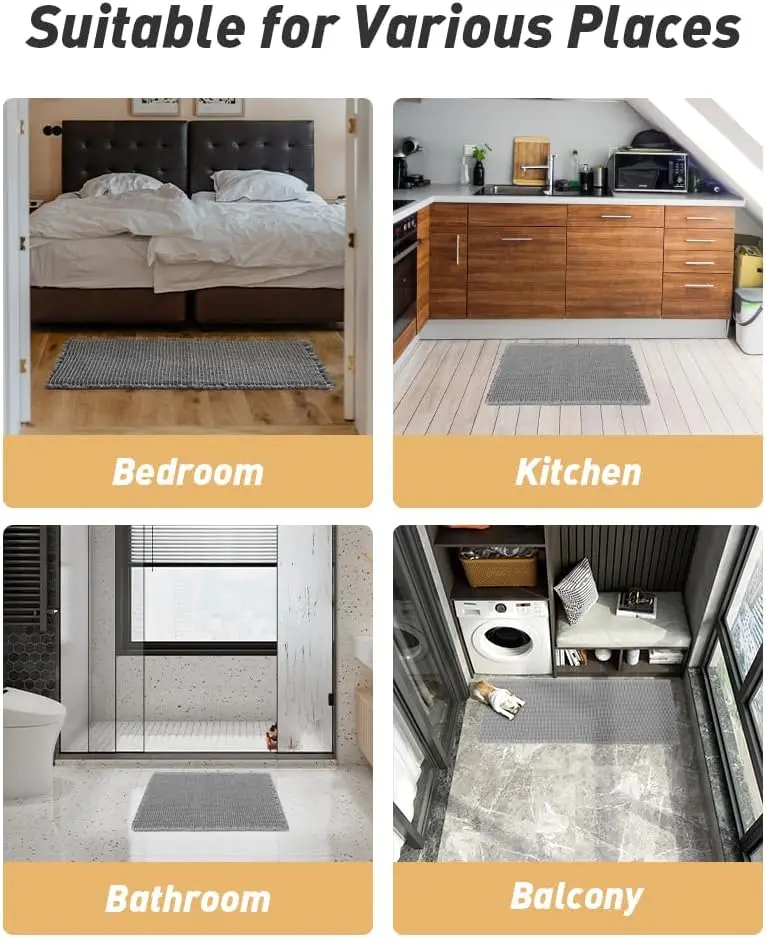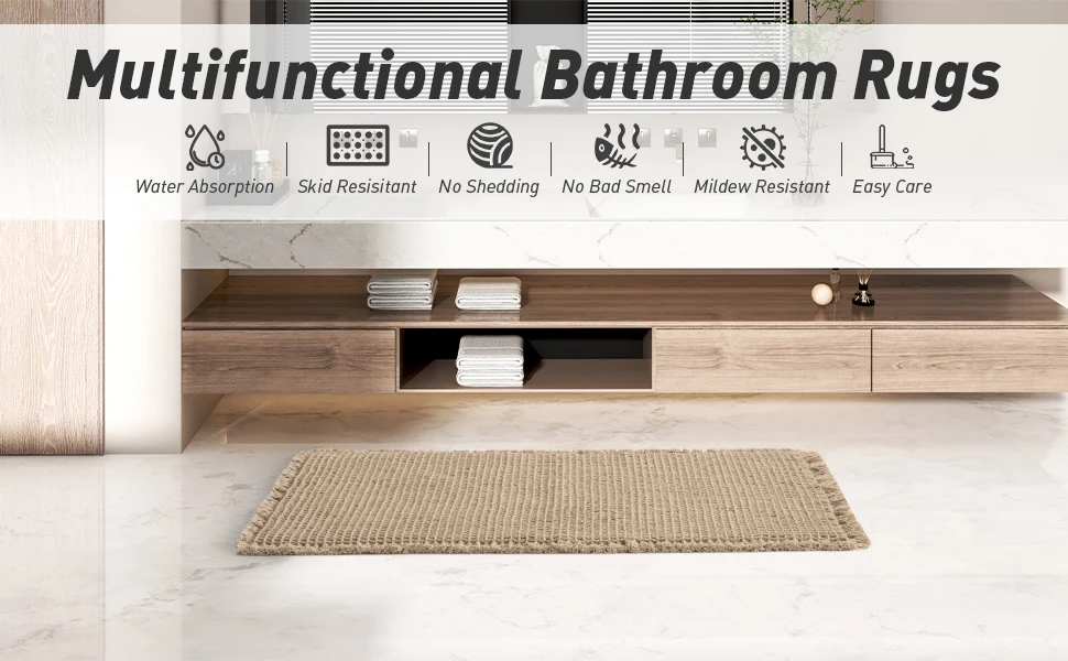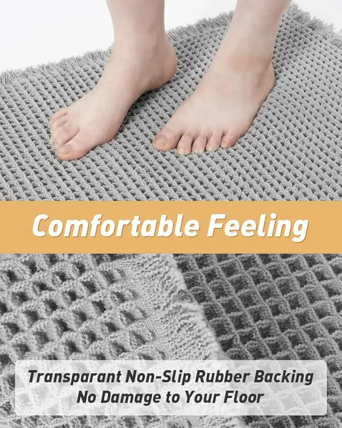 Solid Color Waffle Bath Mat Rug Absorbent Non Slip Bath Mats Machine Washable Bathroom Rugs with Tassels Bath Mat