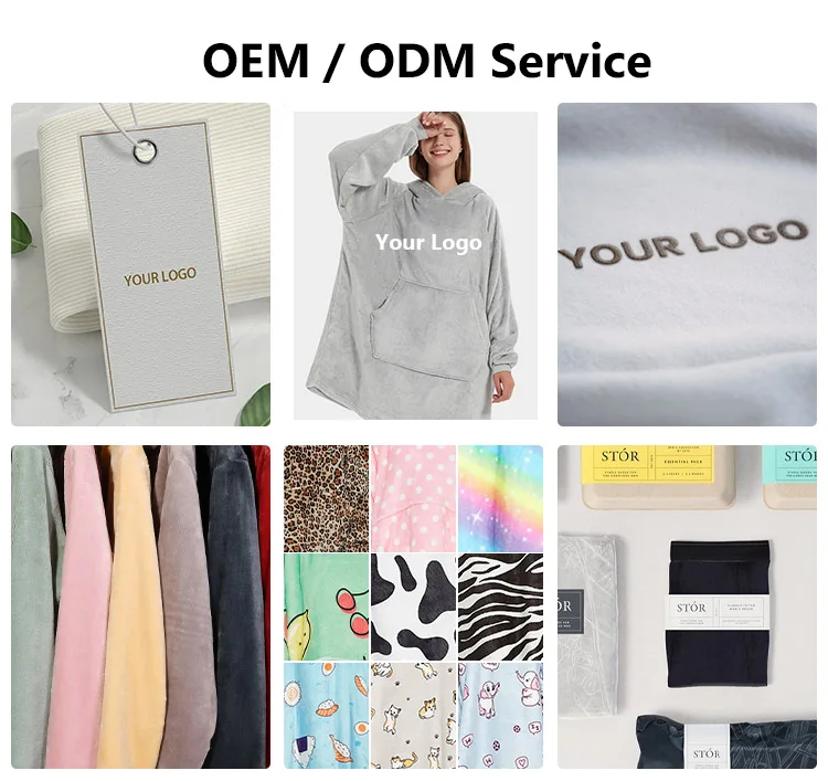 Customizable Wearable Blanket Hoodie with Boho Style Extra Thick Oversized Flannel Sweatshirt Blanket Solid Color Hoodie Blanket