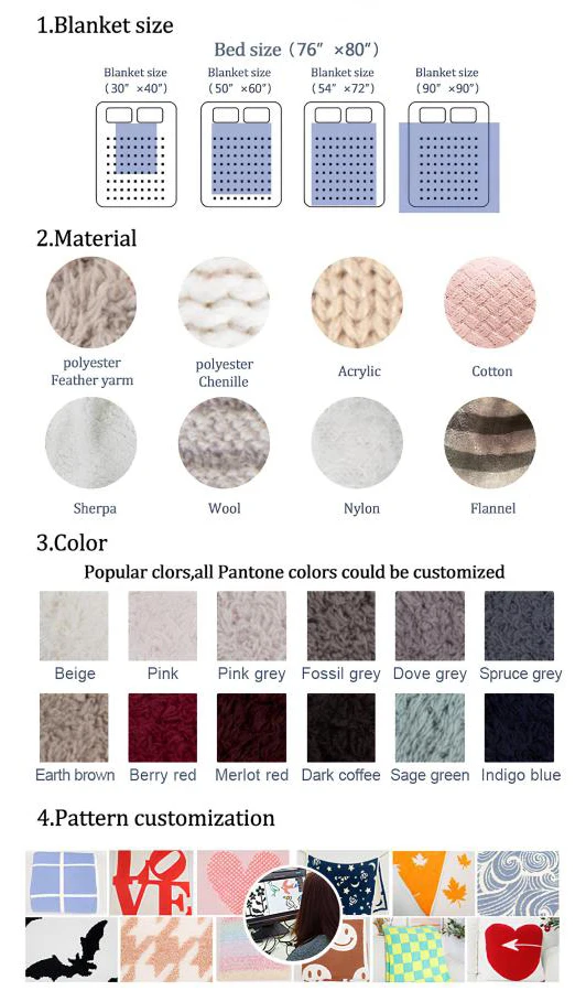 Chenille Chunky Knit Blanket: Our cable knit blanket offers a variety of sizes and colors for you to choose from. The smallest size chunky crochet blanket can be used for kids and pets, and the large size knitted blanket chunky is suitable for adult use