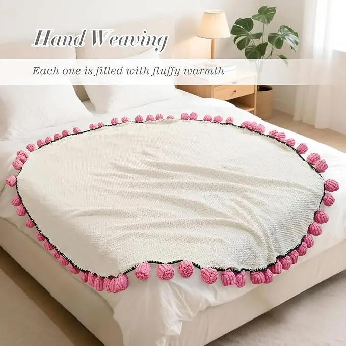 Eco-Friendly: The cute floral knitted blanket made of polyester, super soft, durable, wrinkle and fade resistant. It keeps you warm and cozy when you are relaxing on bed or sofa.