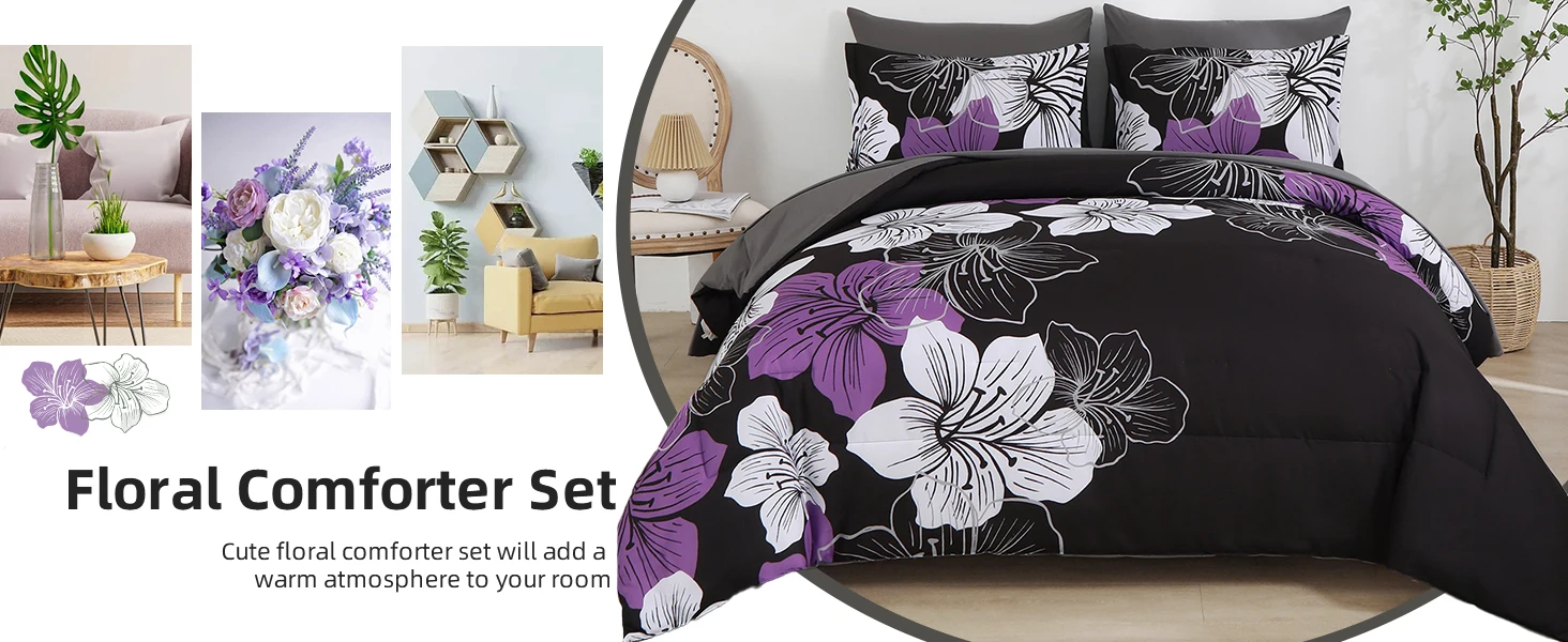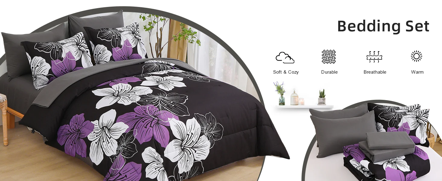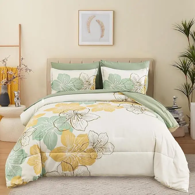 Luxury Decor Floral Comforter Set 5pcs 6pcs 7pcs Printed Floral Comforter and Sheet Set Soft Microfiber Bedding Sets