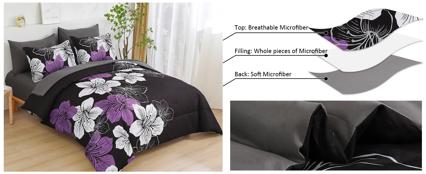 The comforter set used the stitching design to prevent the inner fill from shifting or clumping and will not rip or shrink after washing
