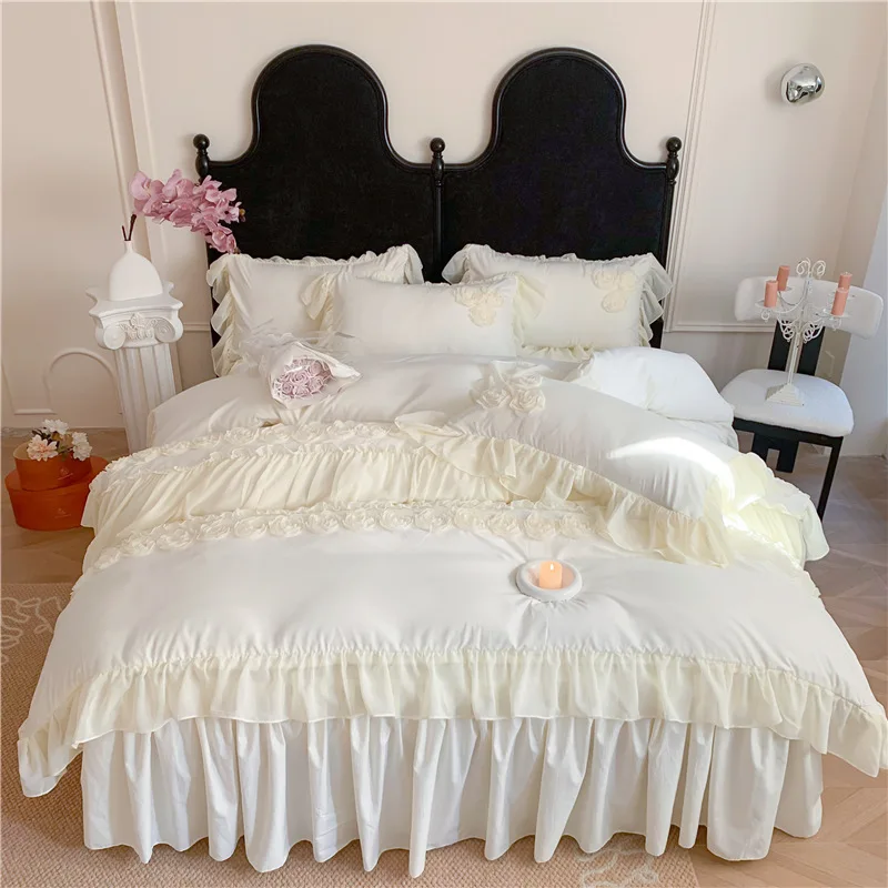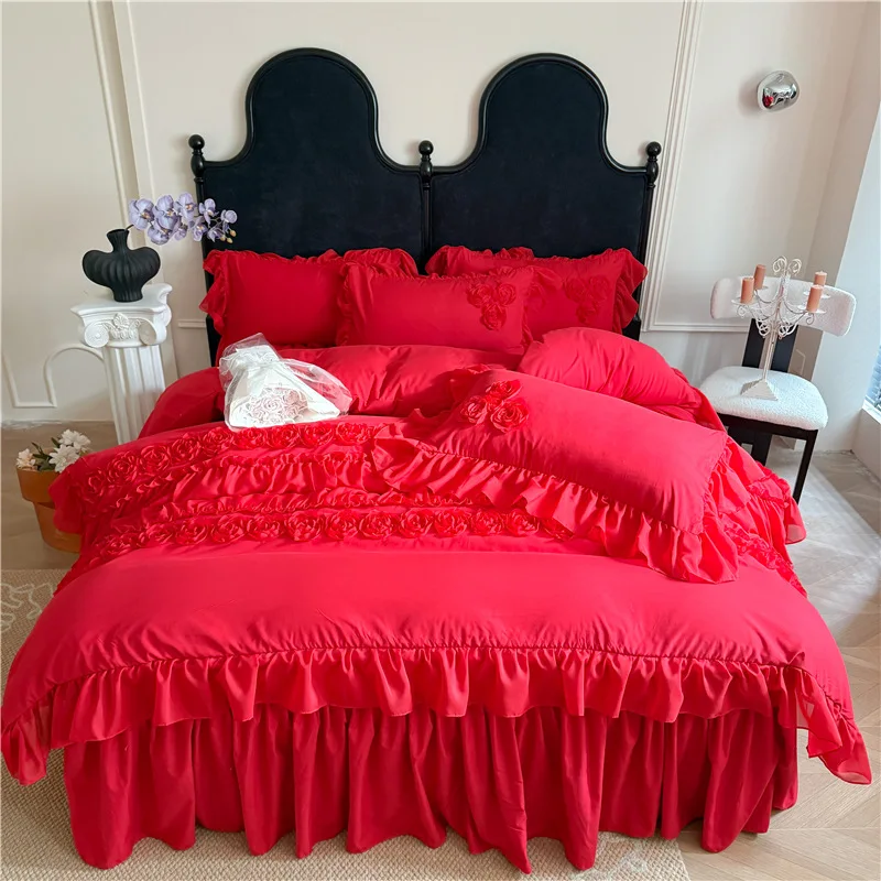 Product Name:Ruffle Beddding Set Usage:Home Decoration Wedding Decoration Packing:PVC Bag + Insert Card + Cardboard Feature:Reversible, Long Lasting, Fade Resistant, Breathable Design:Accept Customized Designs