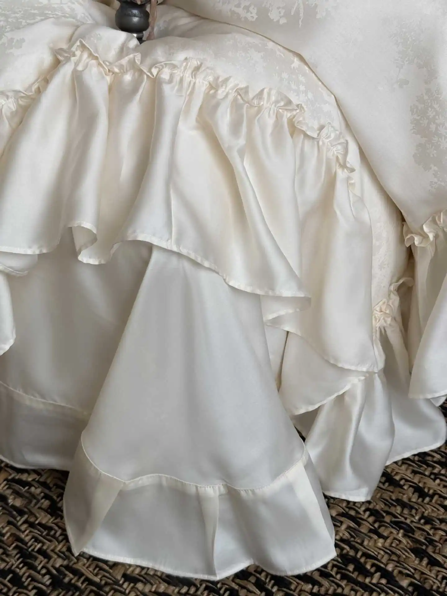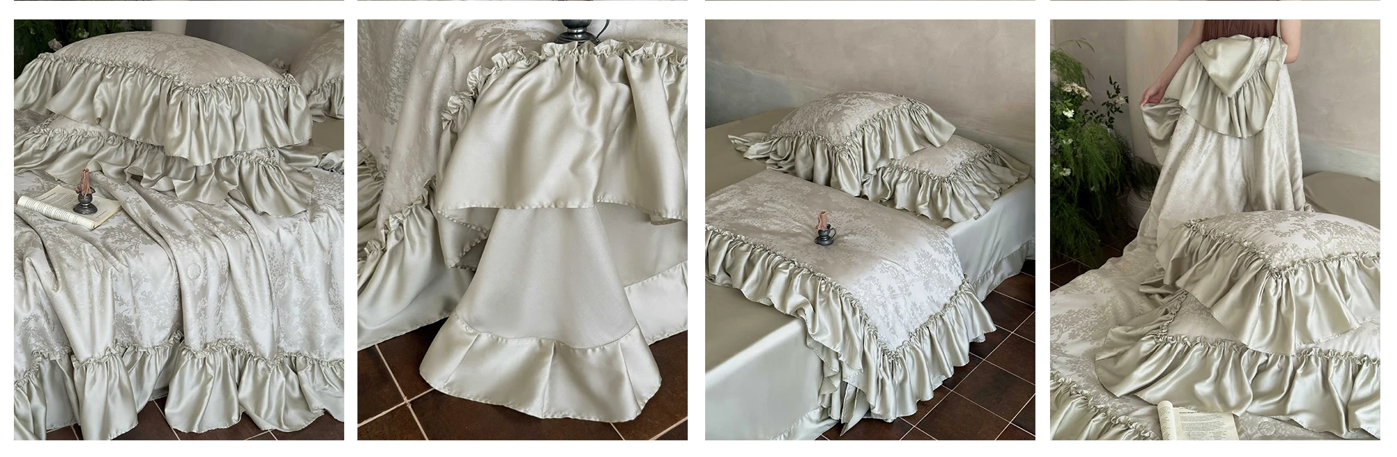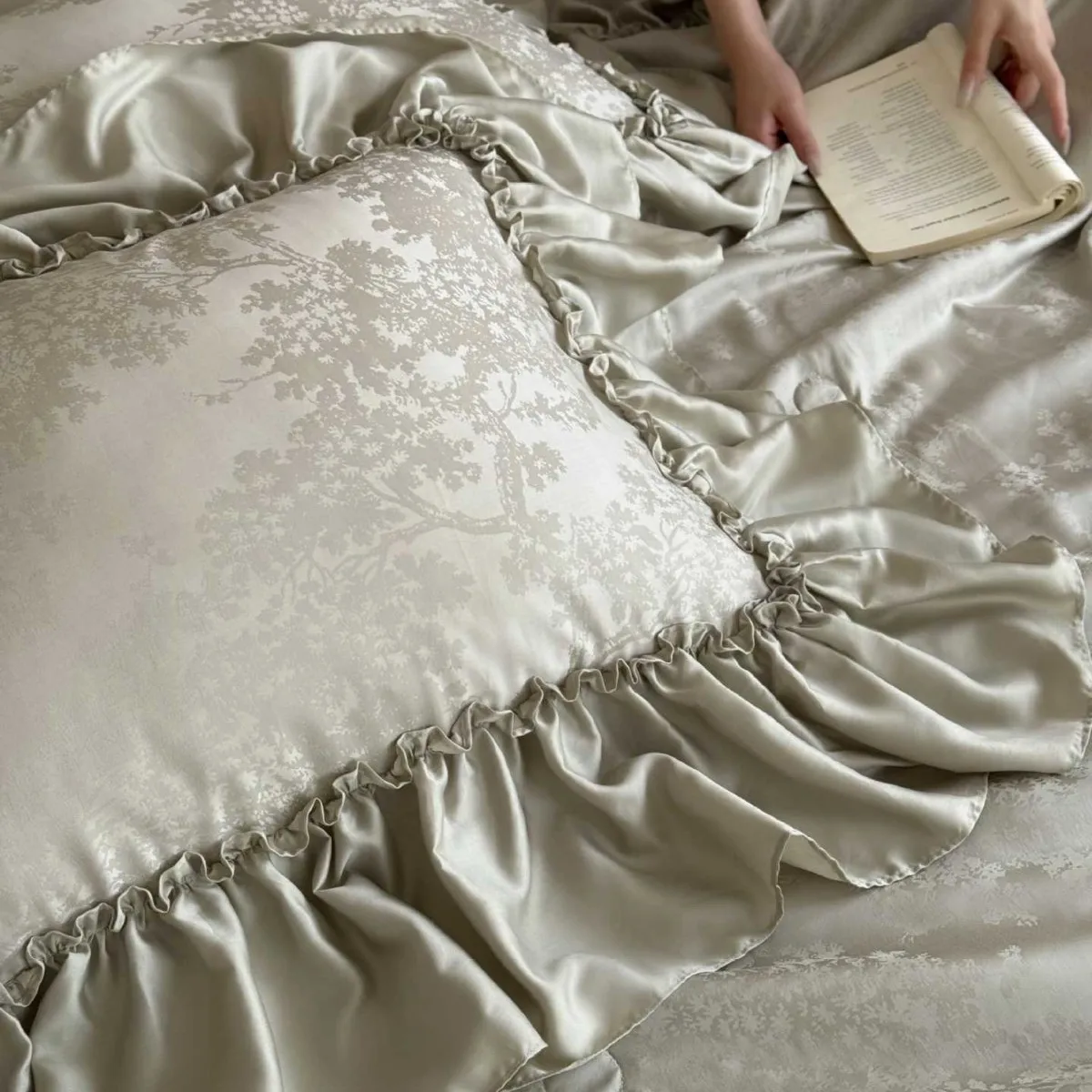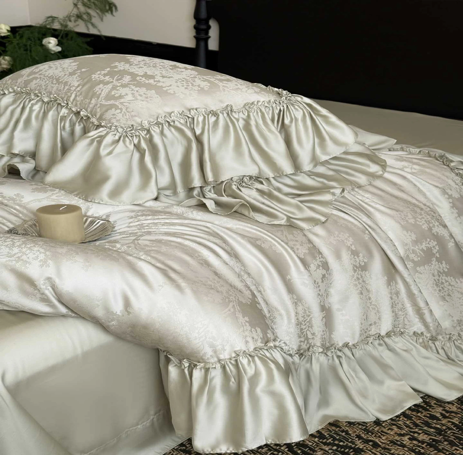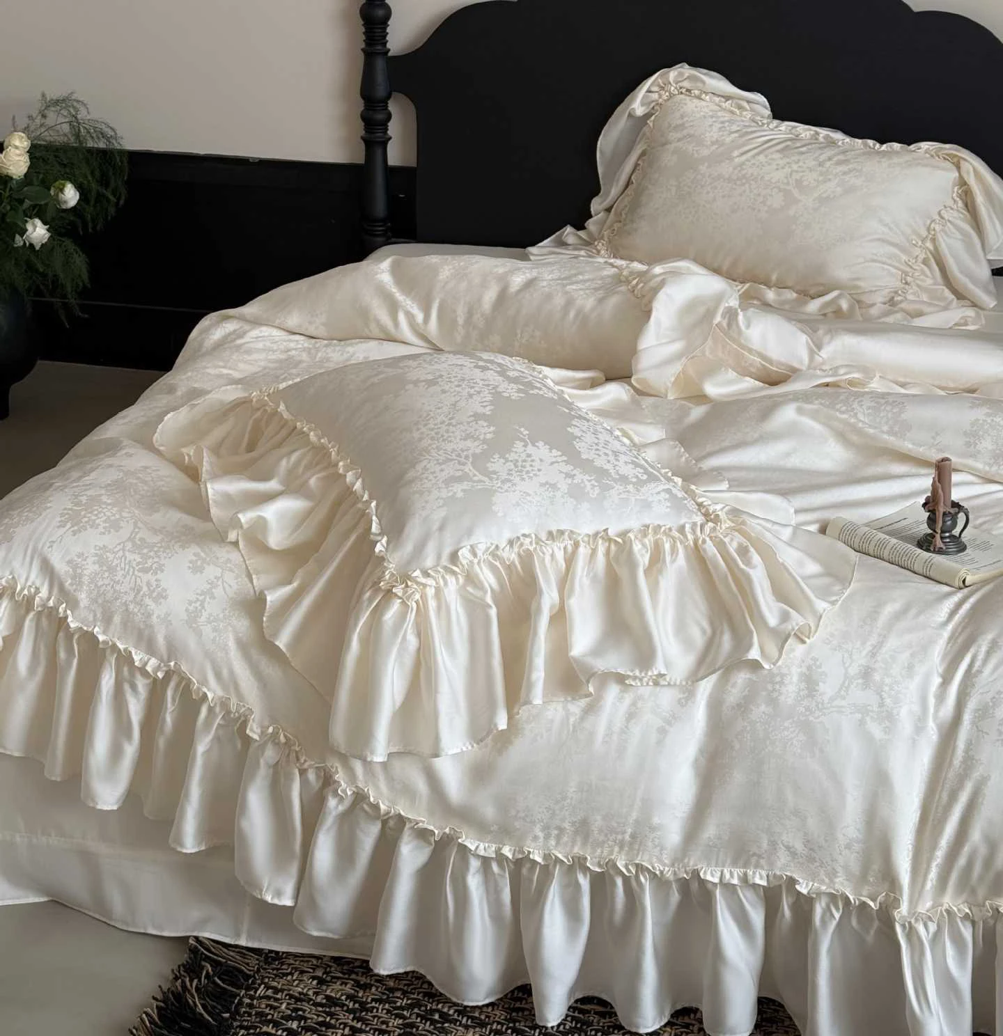 Luxury Lyocell Bedding Set Shabby Chic Ruffle Duvet Cover Set Solid Color Flat Bed Sheets Silky Satin Microfiber Duvet Cover Set