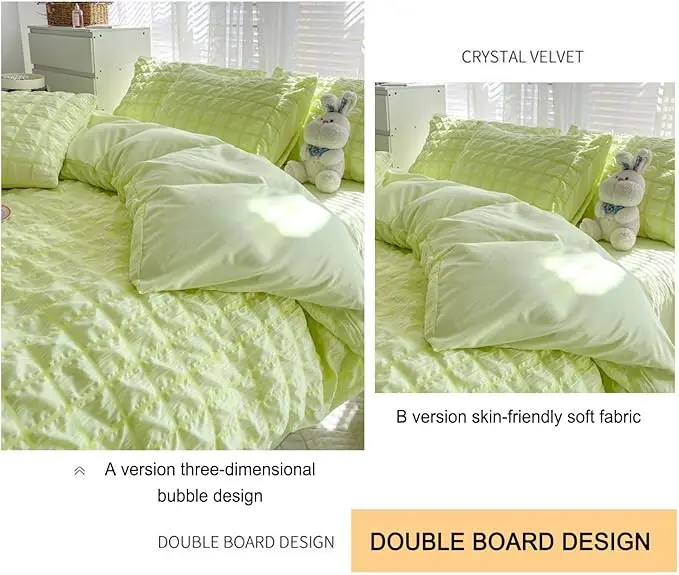 【Fabric】Our bedding sets is made of Three-dimensional seersucker fabric, Not only soft but also texture, let life have more choices.