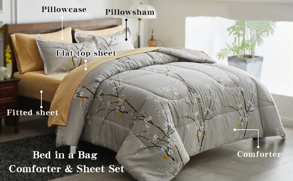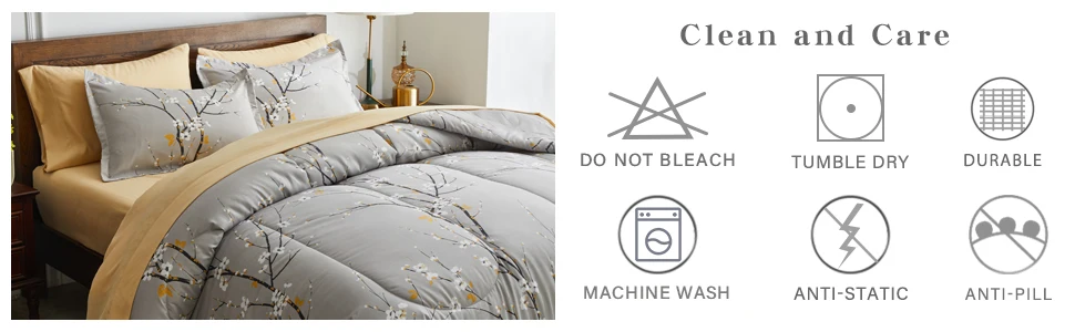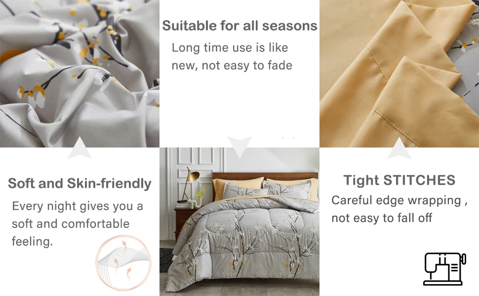 [Soft and Cozy Fabric Bedding Set]- 100% microfiber outer fabric with ultra soft down alternative inner fill. Ultra soft, smooth and adorable to your skin. It is lightweight but warm and it can be used all the year round.