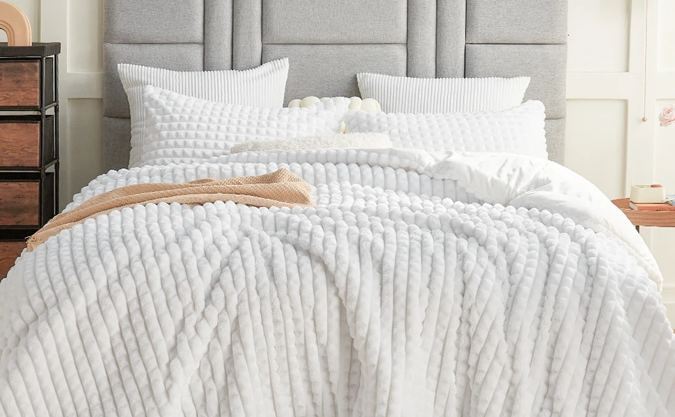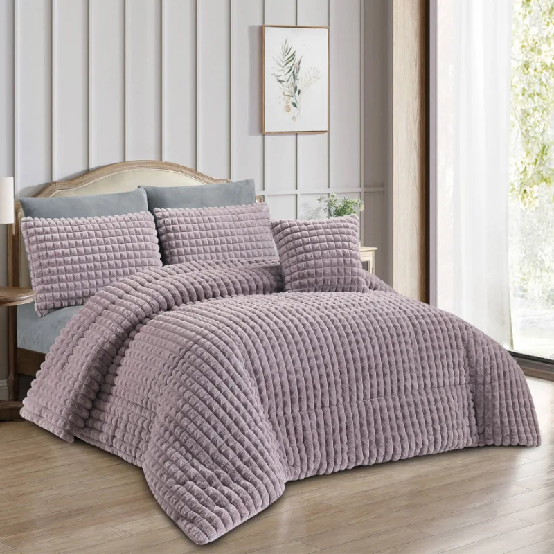 Comforter Set Soft Comforter for Queen Size Luxury Warm Bedding for Winter Fuzzy Double Rabbit Plush Thick Bed Set