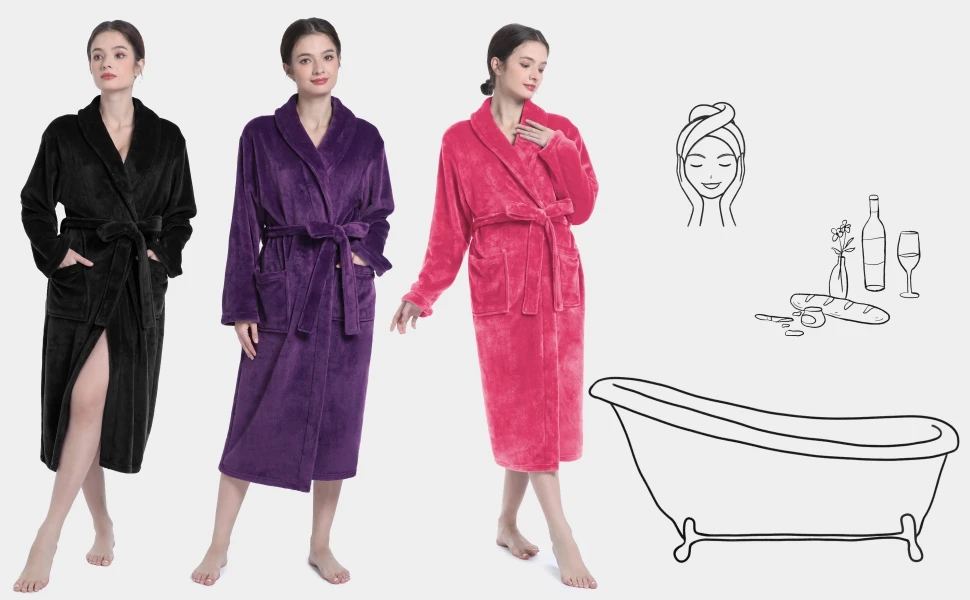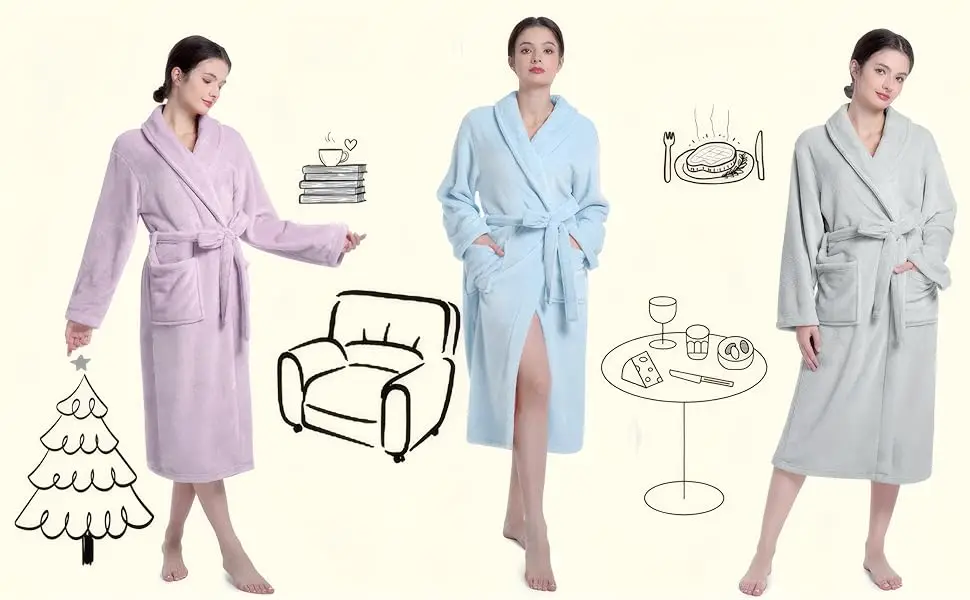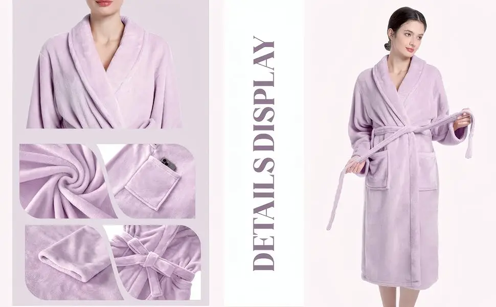 SOFT & FLUFFY - Our robe crafted from premium fabric, caresses your skin gently and provides ample warmth for those cool mornings or moments of relaxation after a bath.