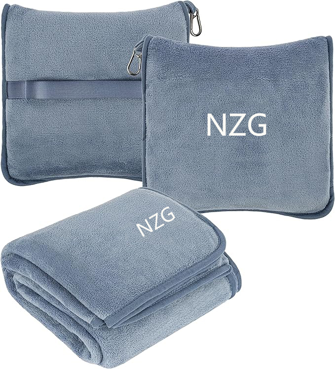 Airplane Throw Warm Blanket, Machine Washable: Our plane blanket comes rolled up in a matching soft grayish blue-colored plush travel bag/pillowcase, making it portable while traveling. Best of all, both the travel blanket and zipper travel case are washer- and dryer-safe.