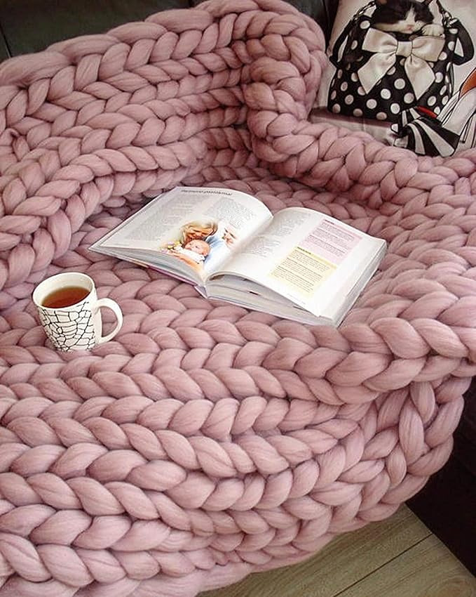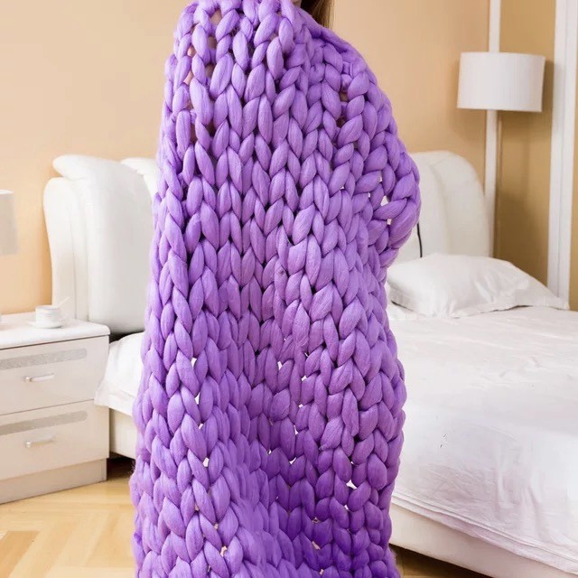 Breathable Chunky Knit Blanket --- It has active fiber's which mean it reacts to change in body temperature,both this and it's breathability mean thatit isn't clammy when going indoors from outside,not only that but it helps to regulate the heart rate which also improves sleep.