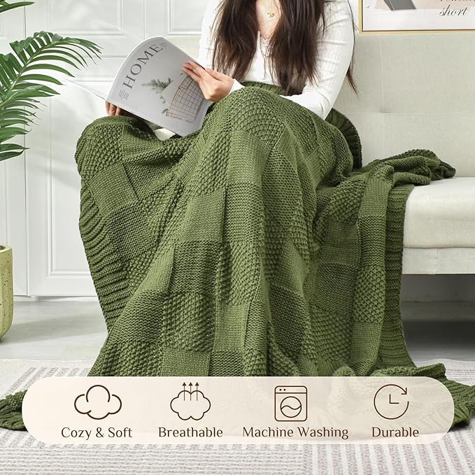 Checkered Throw Fall Blanket Christmas Checkered Bedroom Blanket for CouchSoft Cozy Knit Warm Decorative Spring Blanket