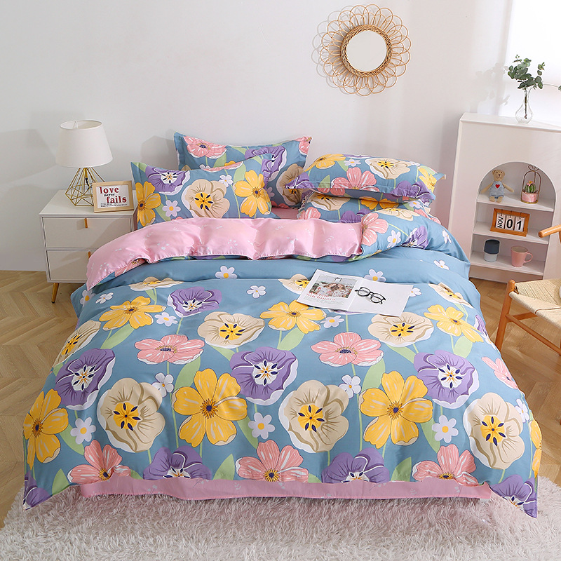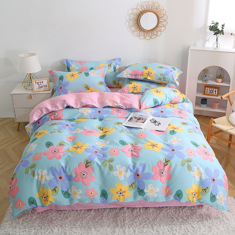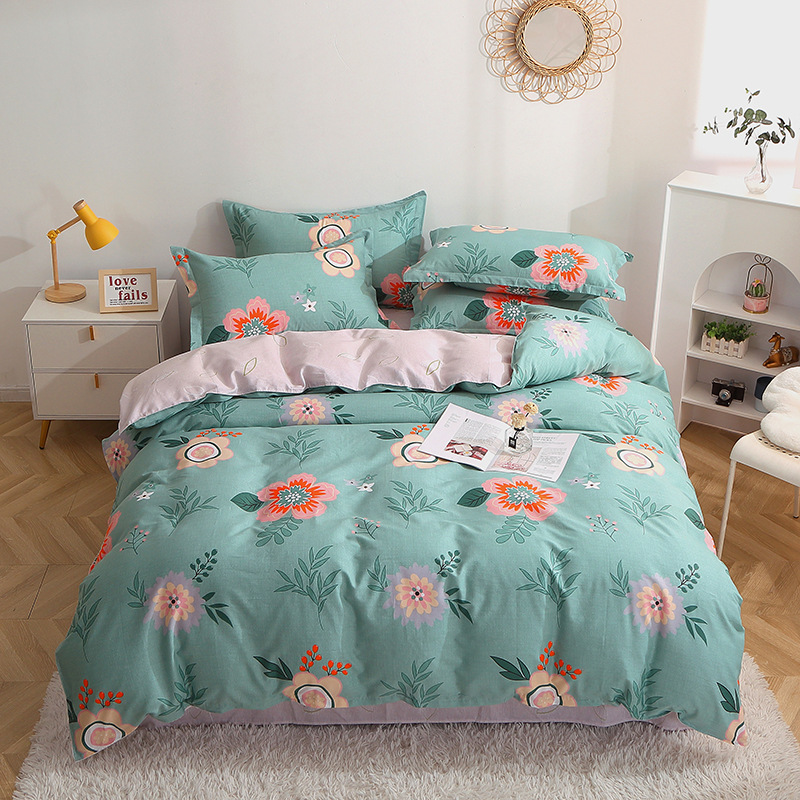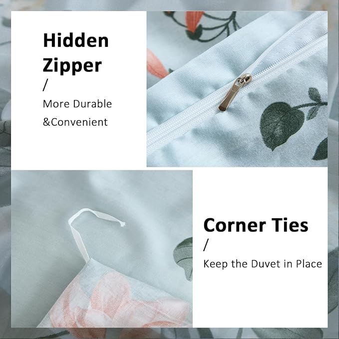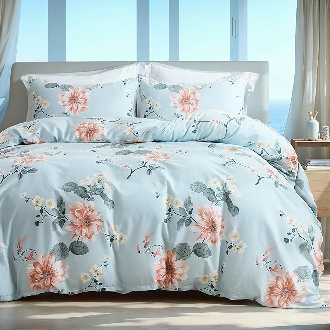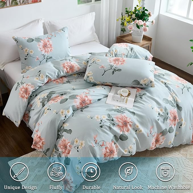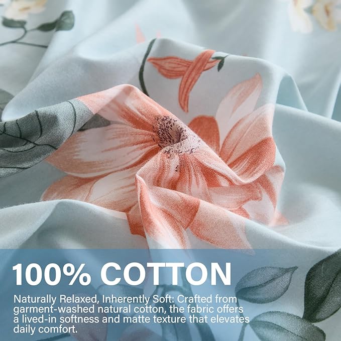 Floral Duvet Cover Sets Cotton 4Pieces French Country Chic Garden Style Luxury Blossom Floral Reversible Pattern Bedding Sets