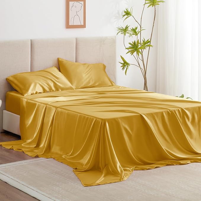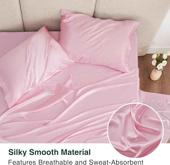 Easy to Care- Our satin sheets set is machine washable in cold water and tumble dry low, do not bleach! If your skin is sensitive, we suggest you to wash it before using.