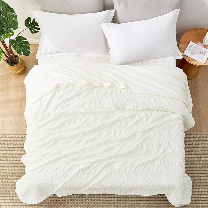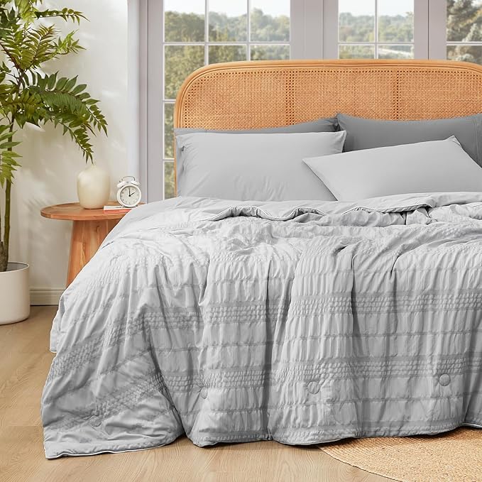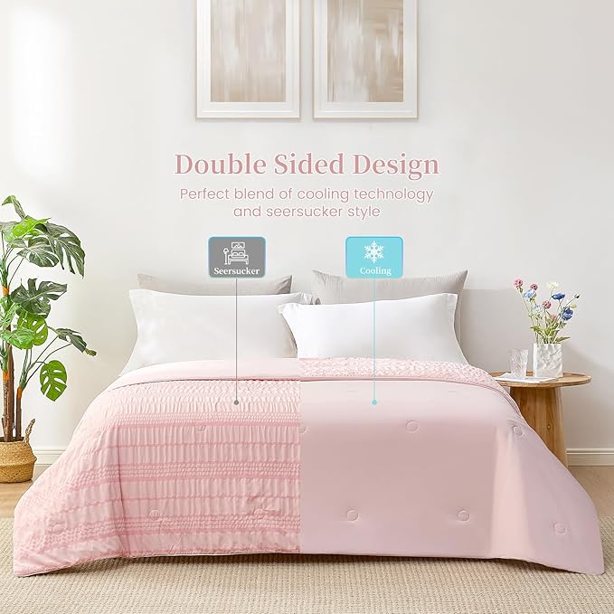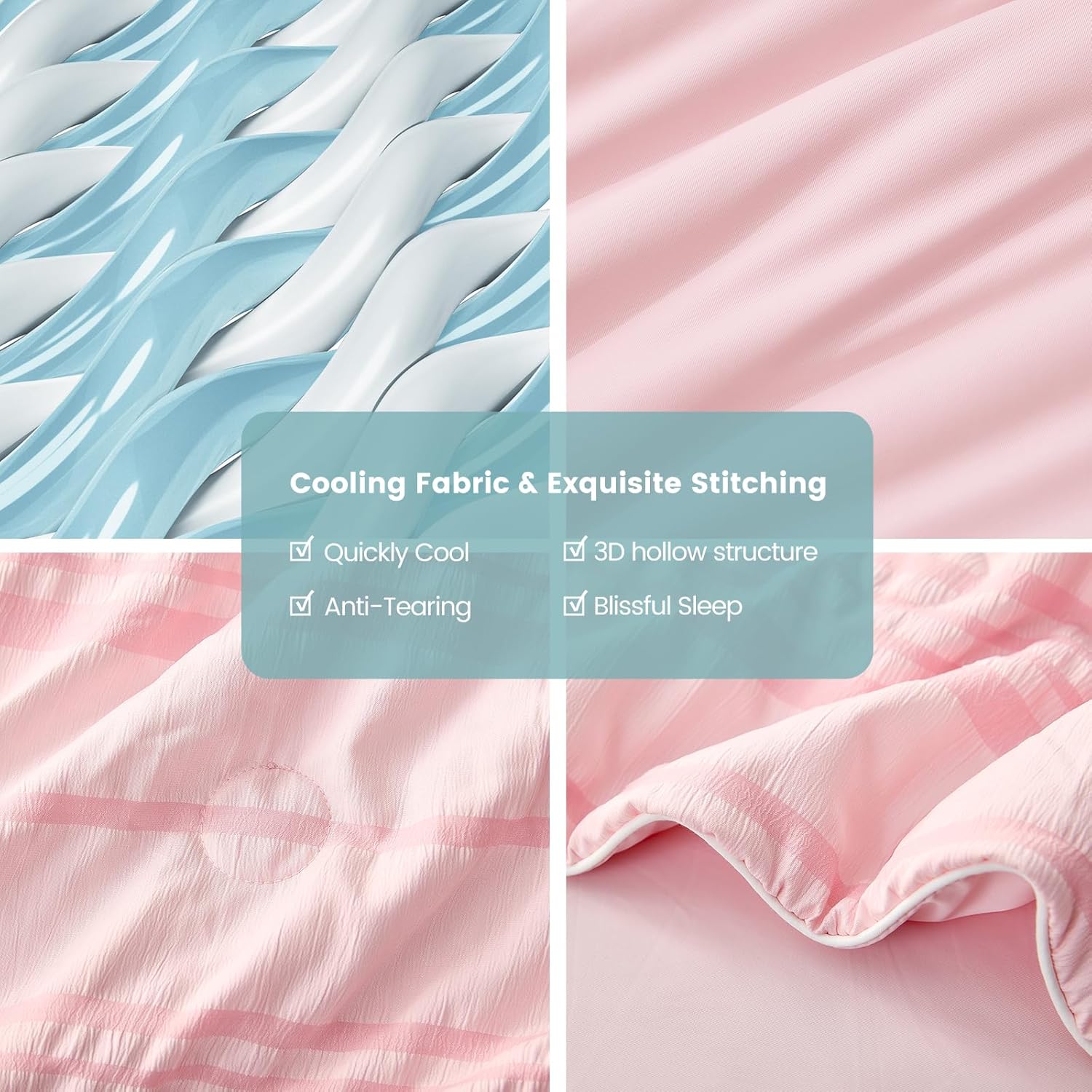 Seersucker Cooling Comforter Luxurious Reversible Lightweight Cooling Blanket Breathable Silk Smooth Summer Bedding Quilt
