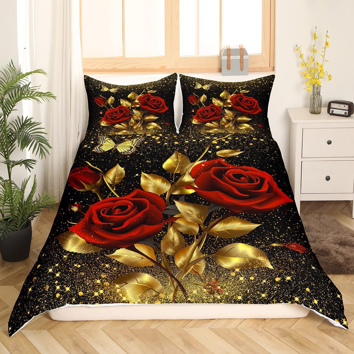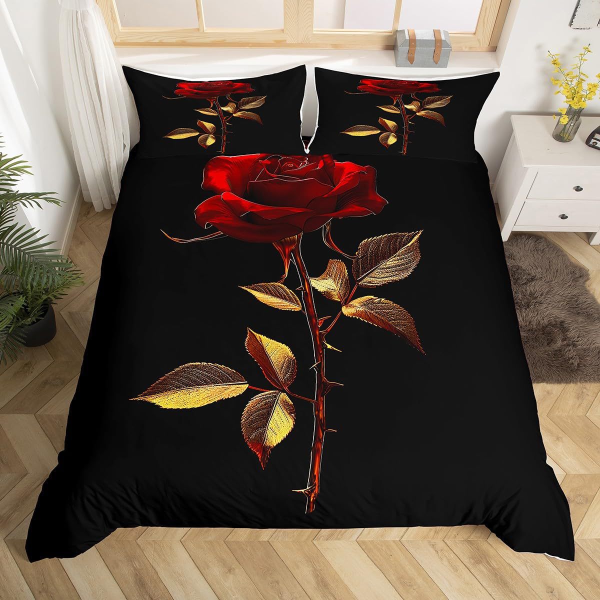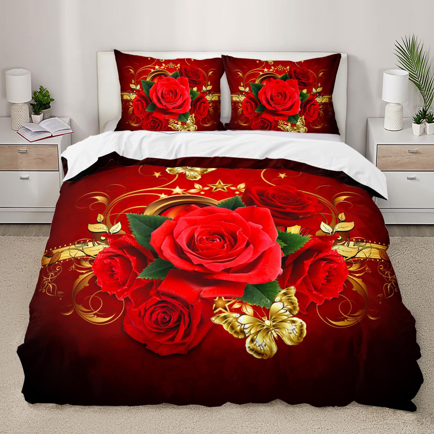 Rose Flower Pattern Duvet Cover Set Soft Red Floral Duvet Cover 3D Digital Printed Bedding Set Soft Comfortable Set