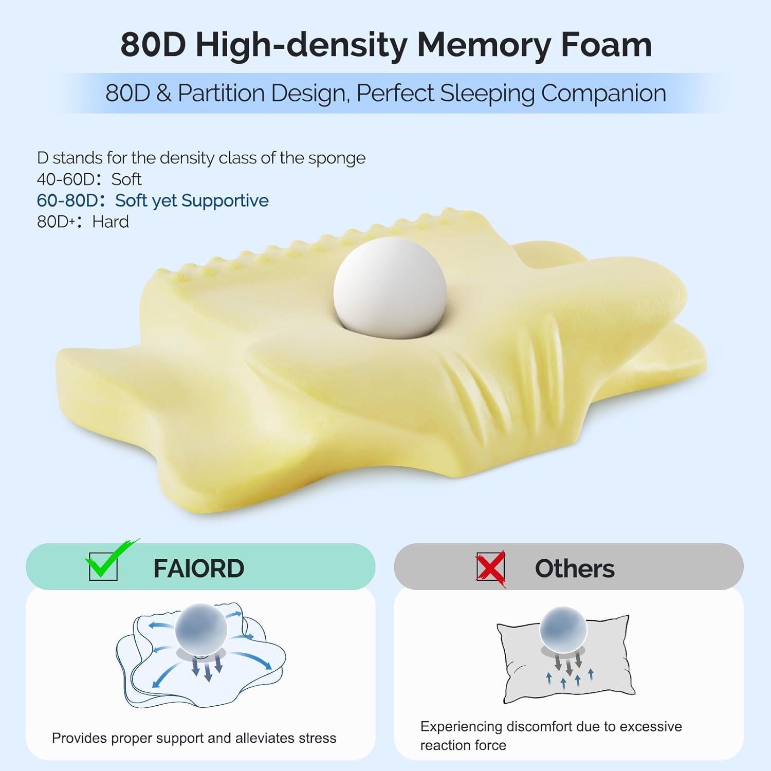 Cervical Pillow for Neck Pain Relief Ergonomic Dual Sided Orthopedic Neck Pillow with Ice Silk Pillowcase Contour Pillow