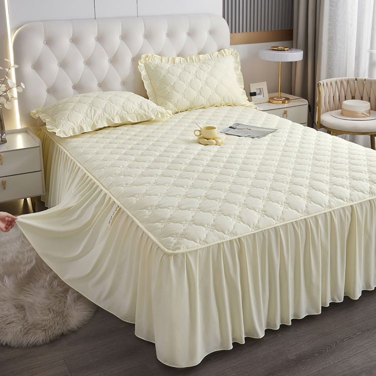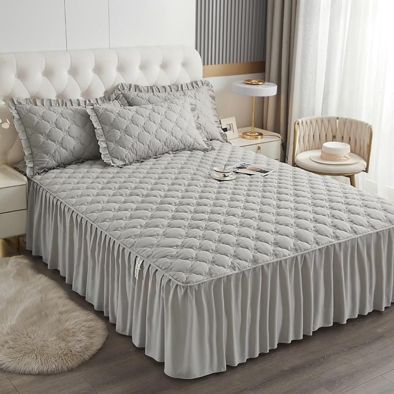 Ruffled Bed Skirt Solid Non-Slip Mattress Dust-Proof Cover Chic Farmhouse Style Lightweight 3 Pcs Set with Pillowcases Bed Skirt