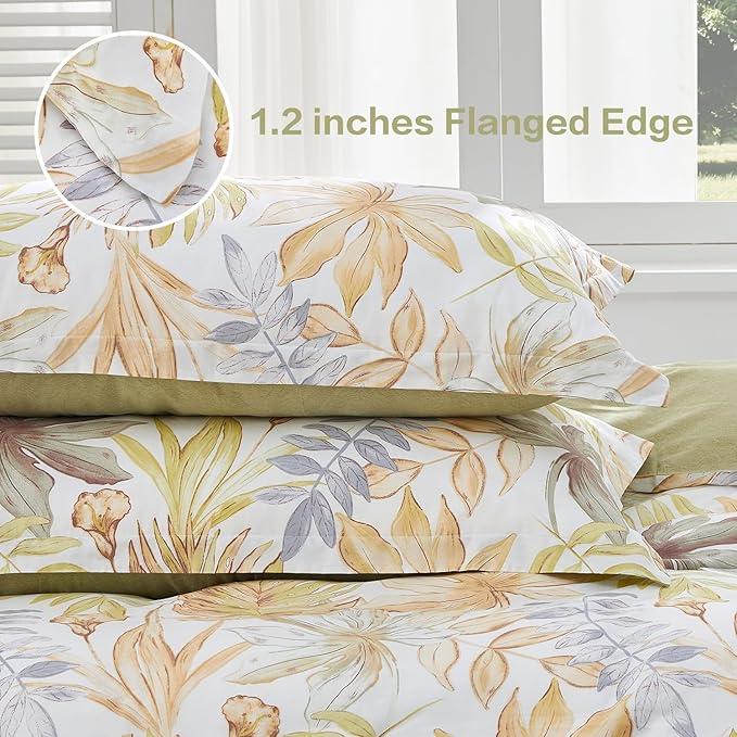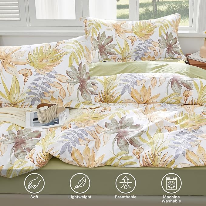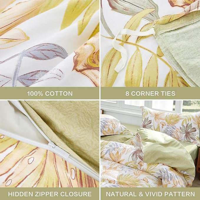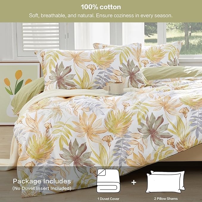 【Elegant Floral Design】: This cotton duvet cover set features a lively leaf pattern that blends modern style with natural tranquility.