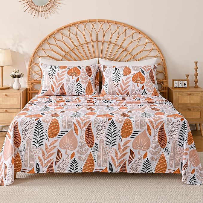 Separately. Elegant Design- Leaves Printed Sheets Feature Gorgeous Botanical Designs For A Bohemian Look Perfect For Any Bedroom.