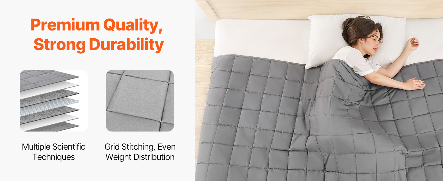 Durable Craftsmanship: Our queen-size heavy blanket is built with 7-layer construction and tight stitching for long-lasting durability and tear resistance. Featuring 8 fixed rings, it stays securely in place, preventing shifting and ensuring a high-quality sleeping.
